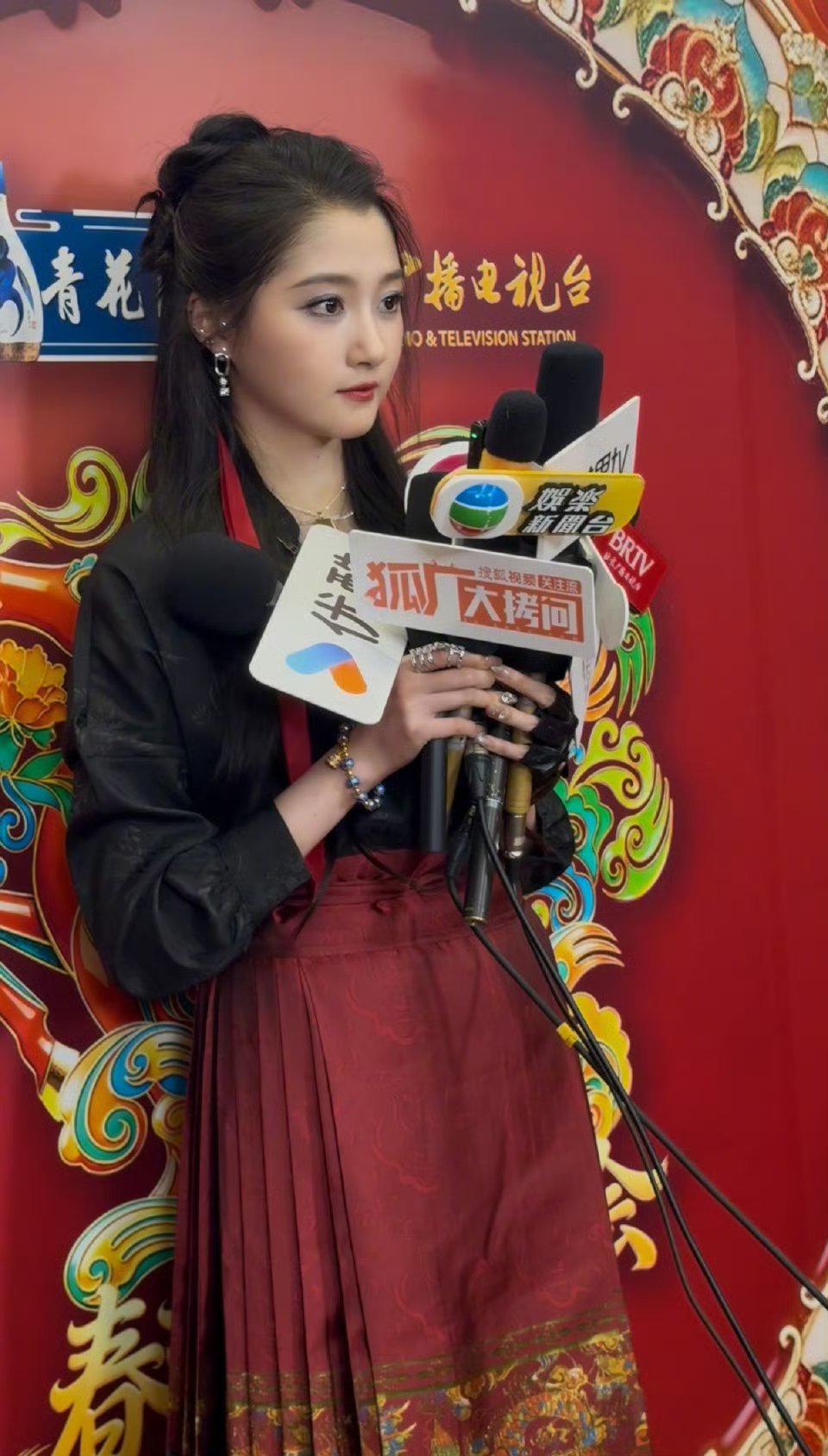 关晓彤身红色新中式马面裙,搭配小烟熏妆容,亮相北京台春晚群采间啦!好期待