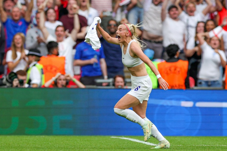 这位英格兰前锋与耐克合作已有数年,她在2022年欧洲杯夺冠后标志性的庆祝动作,将球衣举过头顶、露出白色耐克运动内衣,成为了该品牌的一个经典形象。