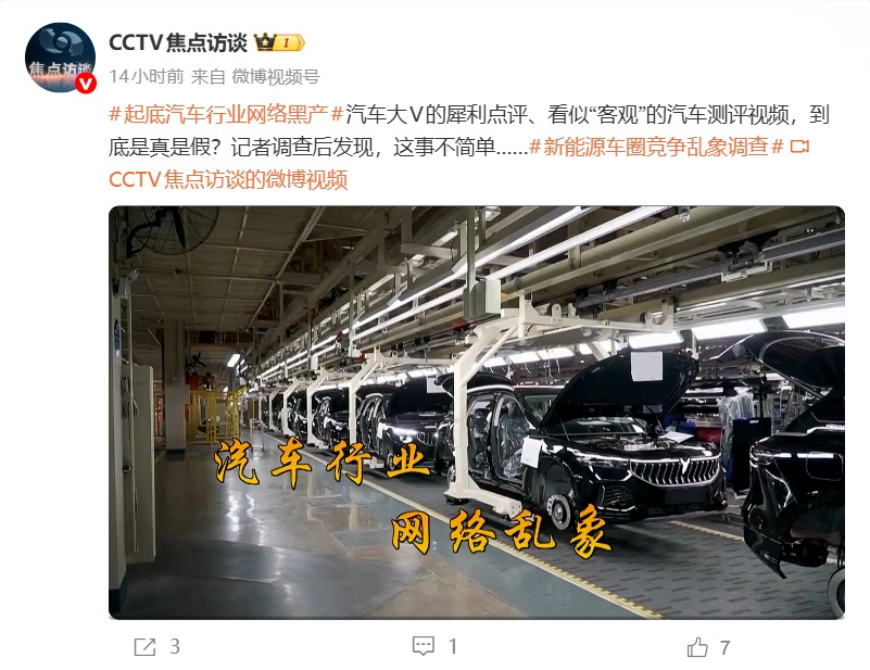 央视《焦点访谈》栏目最新一期节目“起底汽车行业网络黑产”揭露了汽车行业中存在的恶意诋毁、虚假测评等不良现象。节目中提到,一些拥有大量粉丝的汽车博主在商业合作中收取高额费用,进行虚假测评,甚至存在“谁充值多就帮谁说话”的现象。此外,新能源车圈中的黑公关、黑水军、黑自媒体通过线上造谣、线下拉踩等手段,对企业进行恶意攻击,严重影响了行业的发展和市场环境。