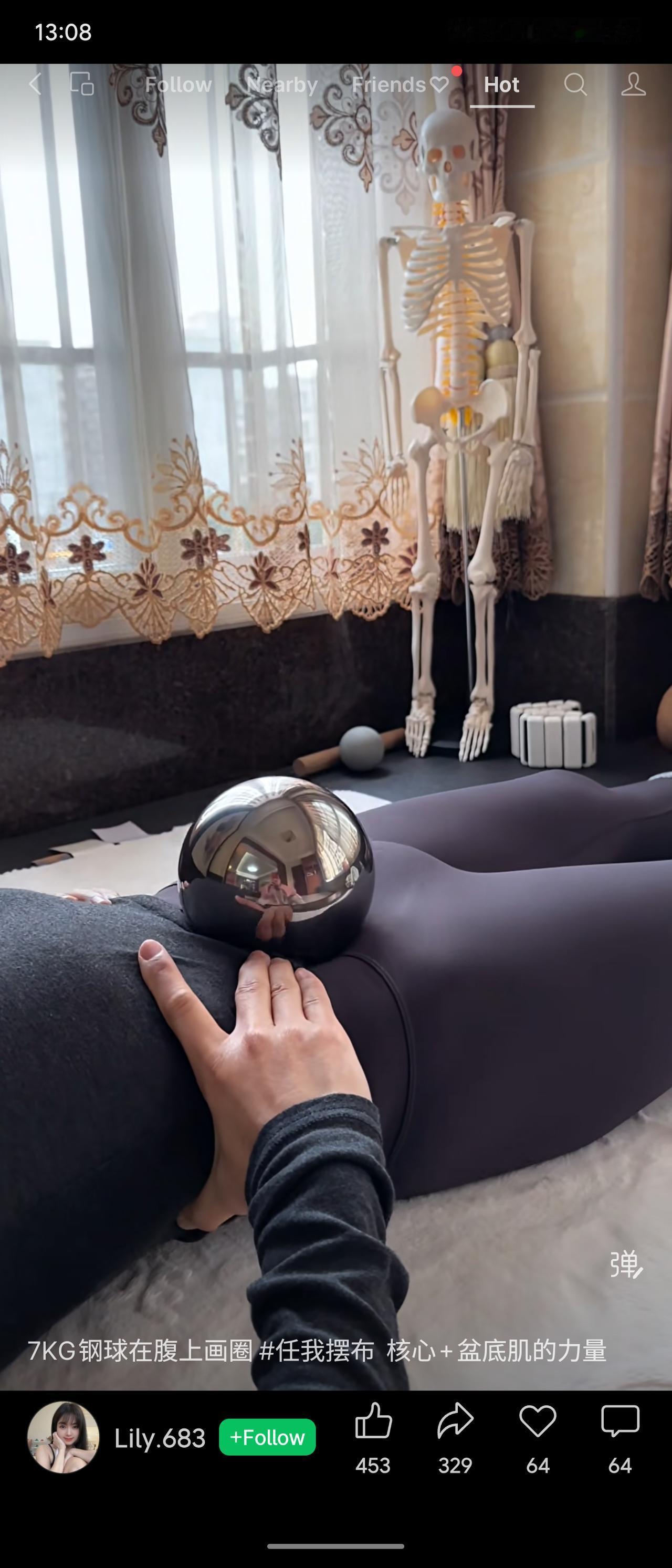 用7公斤钢球在腹部稳定画圈,强调核心与盆底肌的控制力。调侃:这操作让腹肌瑟瑟发抖