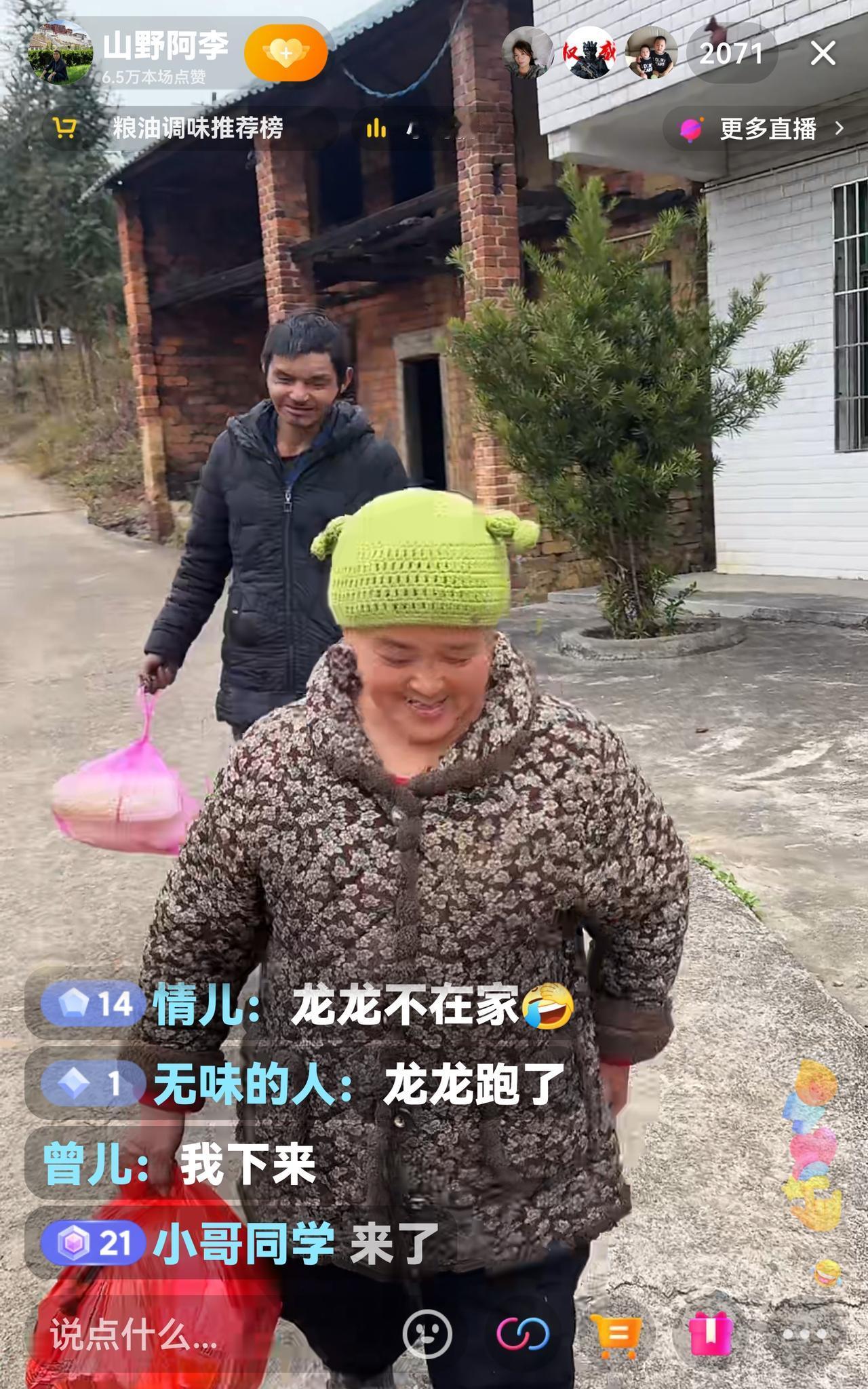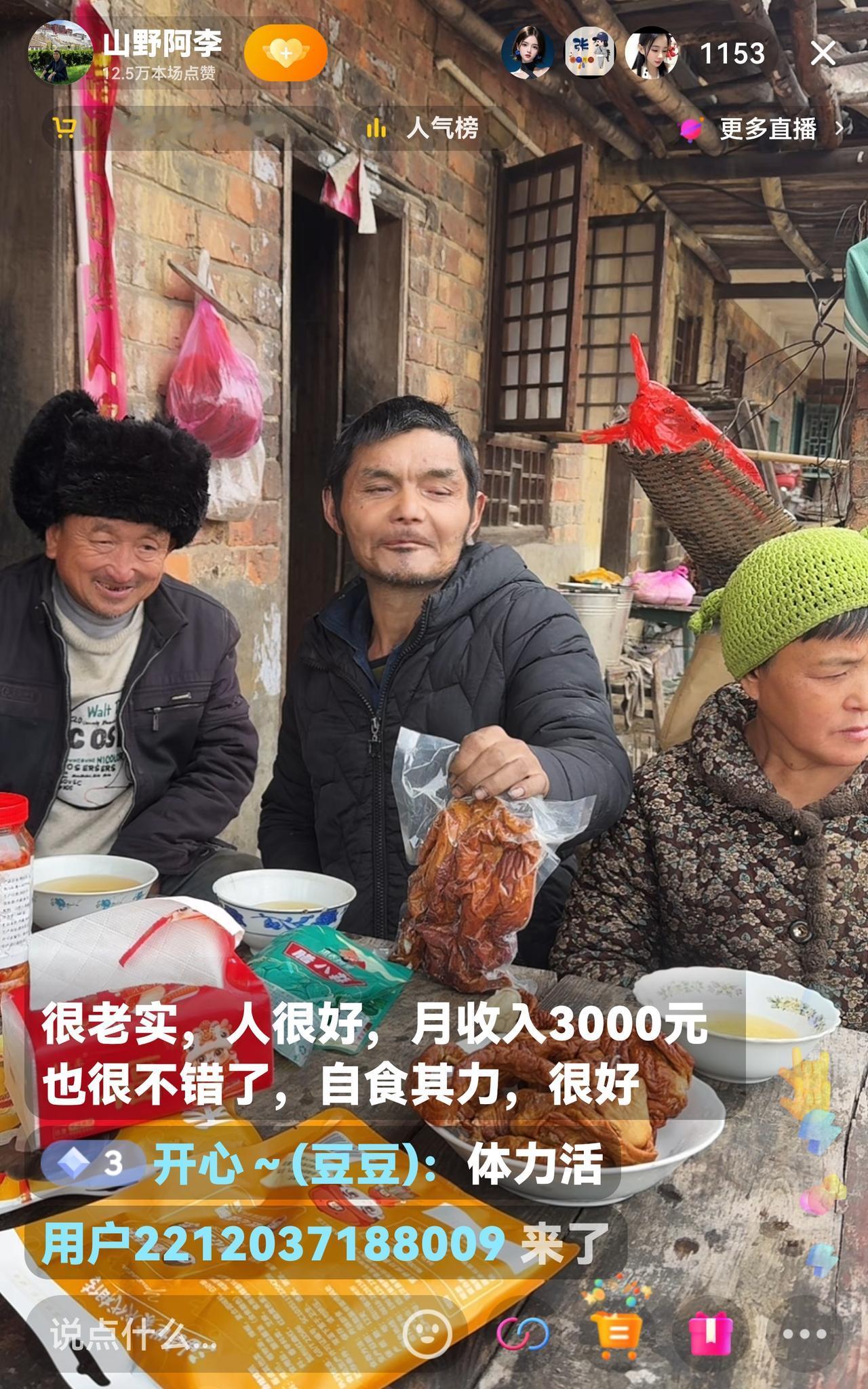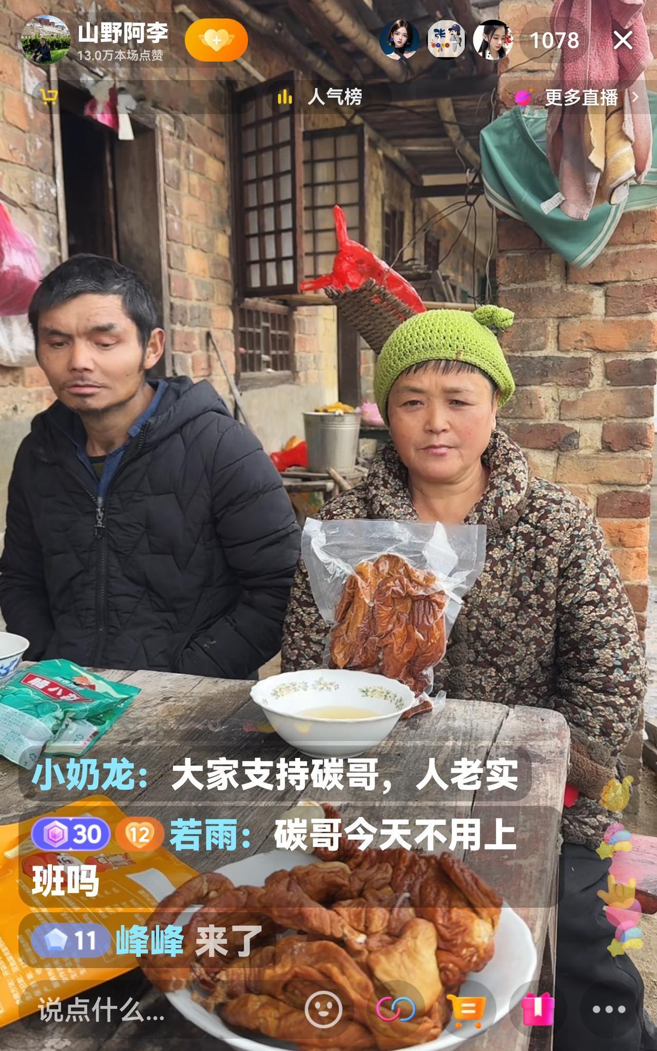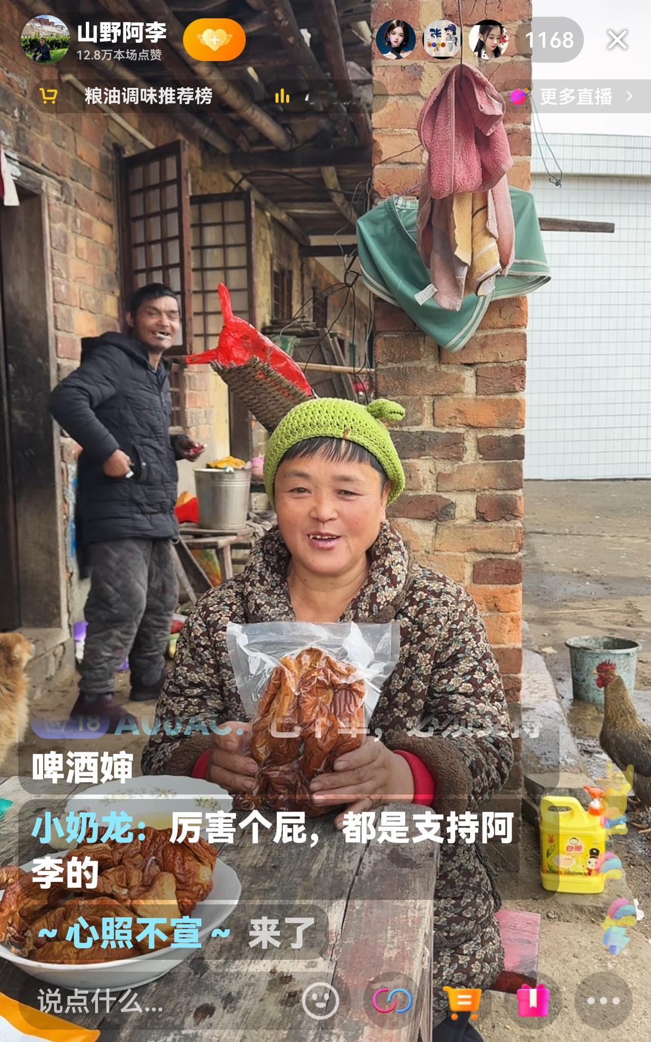 今天碳哥加盟,人气一下子就冲到两千多。阿李领着啤酒婶和碳哥到龙哥家卖货,特价的大肠卖出了一百多单。网友直说这三个人合拍,水平不相上下。啤酒婶今天可神气了,仿佛成了三人中的老大,开心得不得了。阿李借着这大好的人气,带劲地卖货,都舍不得停下。自从阿金回来,阿李的状态愈发好了,看来2026年真是阿李的幸运年。