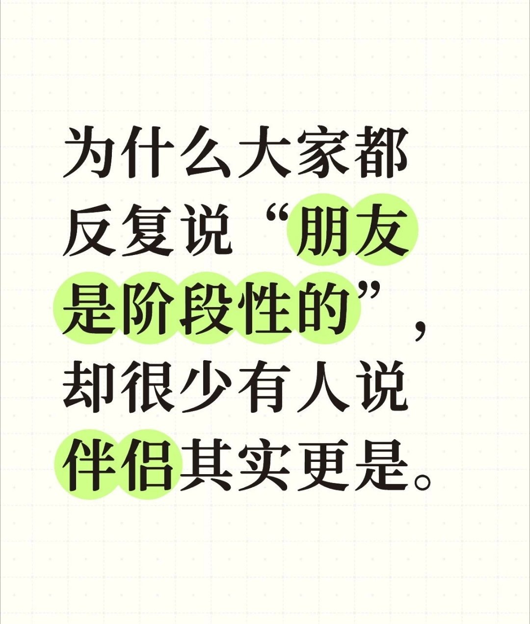 离婚和朋友断交完全不是一个量级的,我们能反复说朋友是阶段性的,那正是因为朋友断交其实是一件很容易的事,顶多让你心理上难受一下而已。离婚可不一样,那是要脱一层皮的,如果把伴侣当成像朋友那种阶段性的,谁能受得了?反复脱一层皮人是会挂的。