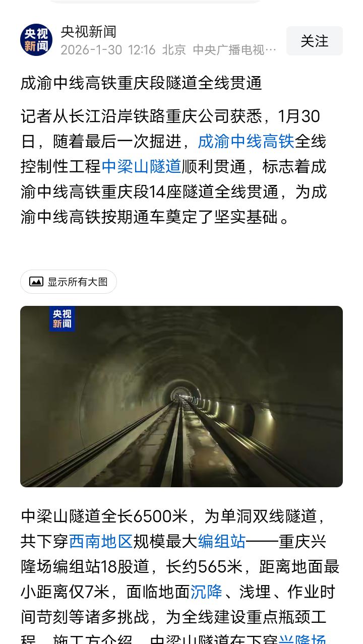 好消息,成都至重庆时速350公里(预留400)的成渝中线高铁全长约8公里的龙泉山隧道和全长约6.5公里的中梁山隧道分别与29日和30日贯通,全长14公里的龙泉山特大桥和井口大桥正在冲刺合龙,预计2027年可以实现开通运营,届时从成都北直达重庆北只需50分钟左右,沿途的乐至、安岳和铜梁等地将结束不通高铁的历史,沿途各区县之间来往也会更加方便,成渝中线有望用CR450高速动车组按时速400开跑,届时成渝中线高铁将为中国最快高铁,信息以官方和实际为准。