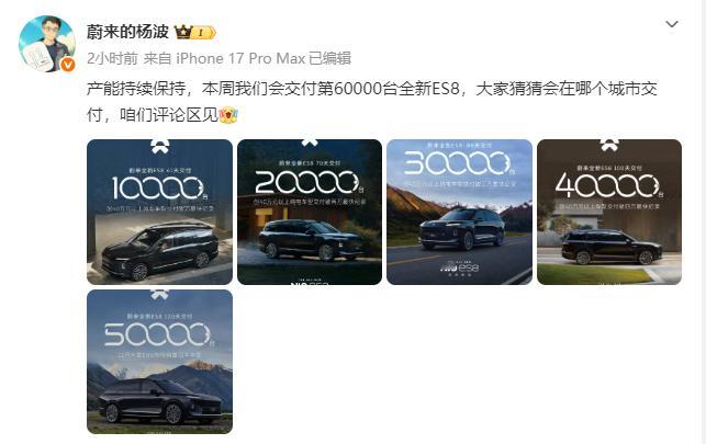 全新蔚来ES8 1月18日交付到了5万台,在开启交付的第120天,仅过了2周又交付了1万,蔚来这交付速度可以的