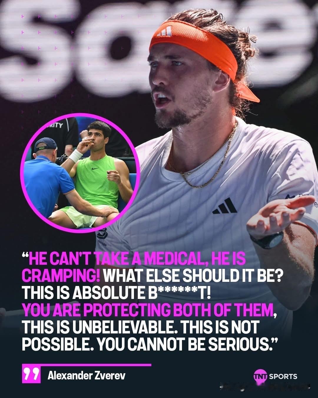 亚历山大·兹维列夫对卡洛斯·阿尔卡拉斯获得医疗暂停感到不满! 兹维列夫说:“他
