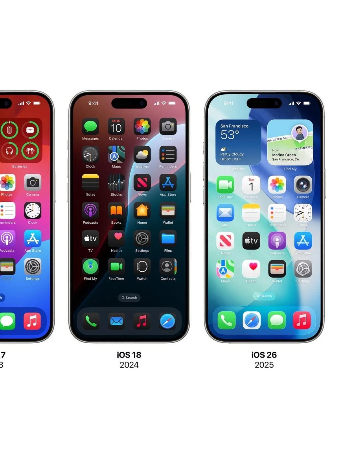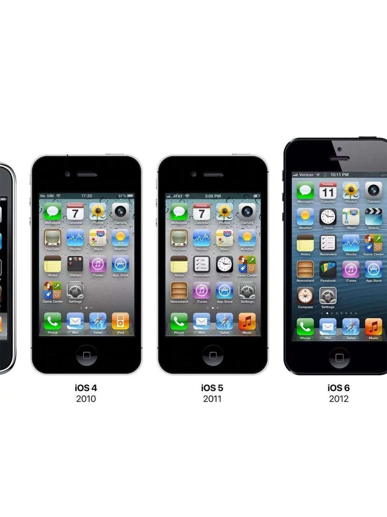从iOS 1到iOS 26,18年的变化真大 刷到这张iOS进化对比图突然有点感慨。iOS 4到iOS 6那几年的设计是真的精致,皮革质感的记事本、木纹书架,每个细节都很用心。苹果味浓郁。现在用到iOS 26确实流畅很多了,但总觉得少了些味道。