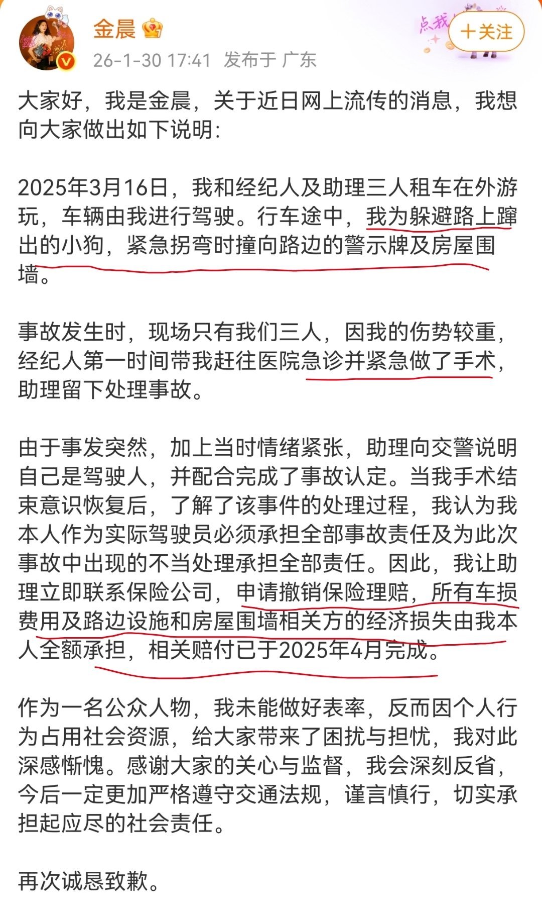 警方通报金晨事件告狗仔吧,普通交通事故被狗仔弄得满城风雨浪费公共资源。没有骗保没有重大事故,这看着完全金晨鼻子脸撞出问题急于医院修复。金晨道歉剧都可以播放心了。金晨被曝肇事逃逸被撞墙农户已获赔
