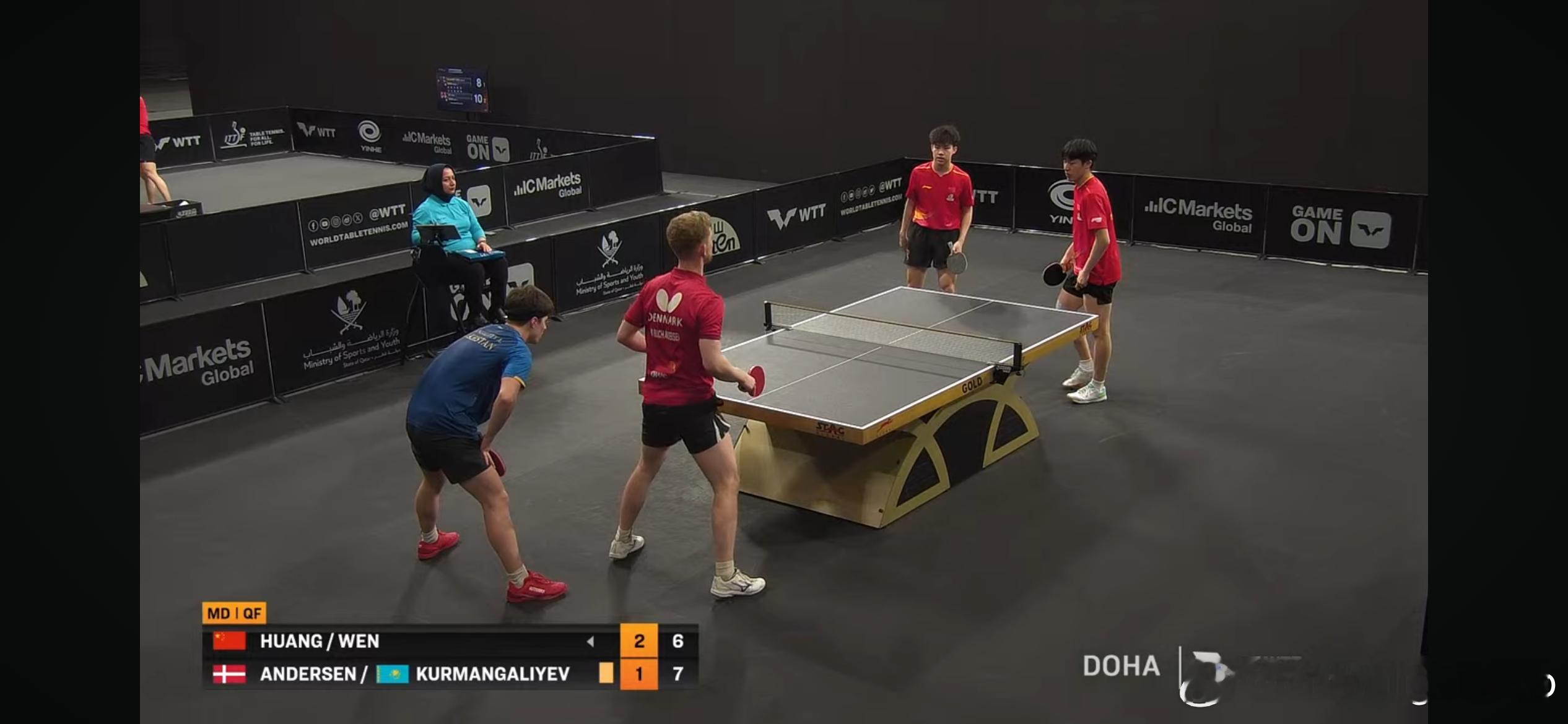 🇨🇳黄友政/温瑞博3比1安德森🇩🇰/肯日古涅夫🇰🇿(12-10,8-11,11-4,11-7)