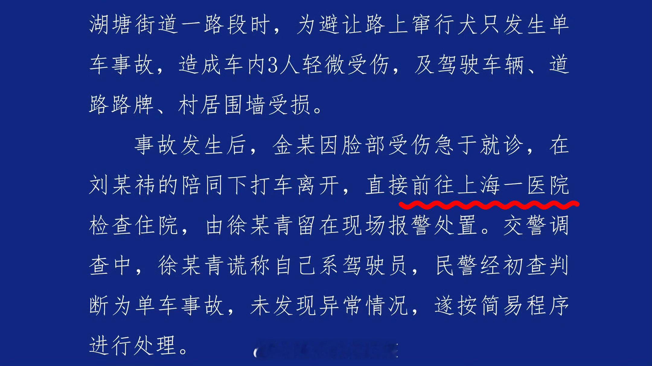 警方通报金晨事件意识都不清醒的情况下,没有优先就近治疗,还从绍兴打车到上海的医院