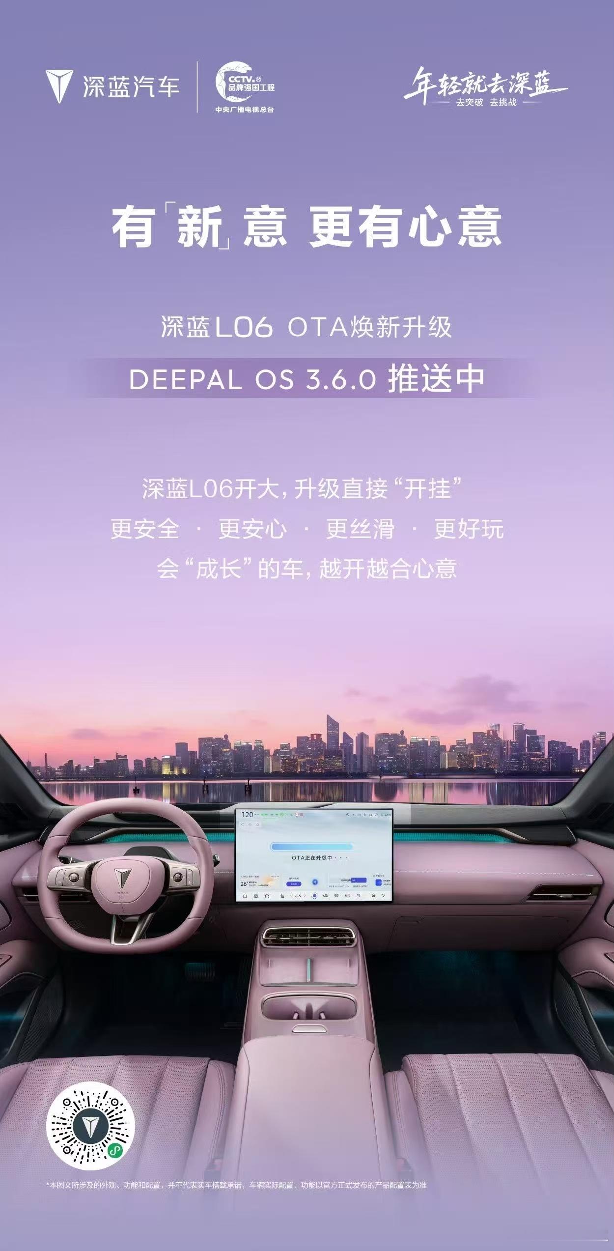 深蓝L06 OTA升级DEEPAL OS 3.6.0全面推送中从安心防护到安全相伴从丝滑操控到趣味出行每一次出行都游刃有余更多升级惊喜等你来解锁深蓝L06OTA升级