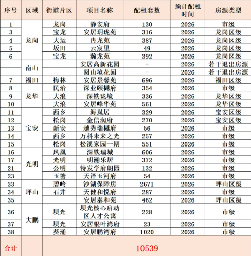 据自媒体@深房驿站统计,2025年深圳共配租了30423套保租房(含社会主体出租房源),其中大部分是定向给了企业;面向个人的房源,宝安、光明、龙华占了一小部分,龙岗和坪山则相对集中;但也有片区整个2025年是没有配租过保租房的,例如盐田区。