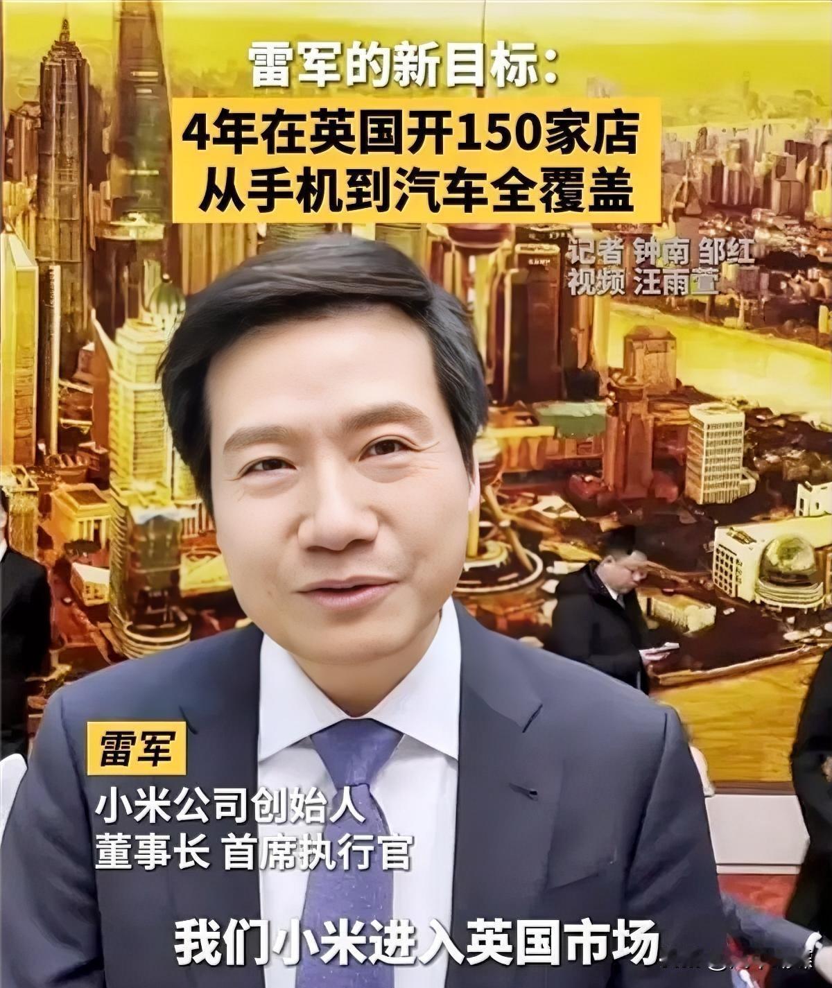 小米加码英国: 150家门店背后的欧洲战略野心 1月29日,中英企业家委员会会议期间(英国首相斯塔默访华之际),小米创始人雷军官宣重磅规划:未来四年内在英开设150家门店,覆盖手机、可穿戴设备及家电,最终实现手机与汽车全覆盖。 小米在英已深耕数年,2025年营收10亿人民币,此前在印、东南亚靠本地化站稳脚跟,此次是战略升级。 英国是欧洲第三大消费电子市场,150家门店直指苹果、三星份额,恰逢中英经贸便利期,是中国企业“本地化+全产业链出海”的标杆,推动中国制造向中国品牌升级。 网友热评:“小米这步棋太妙了!借中英合作东风攻欧洲,门店+全品类组合拳稳准狠。” 你觉得小米能凭借英国布局站稳欧洲市场吗?中国品牌出海还需攻克哪些难关?来评论区聊聊~