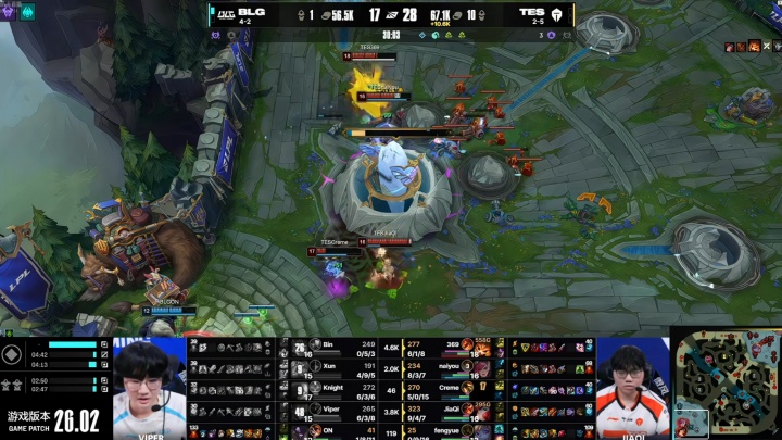 直播吧01月30日讯LPL登峰组,BLG1:1TES,369纳尔在对线期就显著压制Bin鳄鱼,中后期团战369纳尔作用远超Bin鳄鱼。