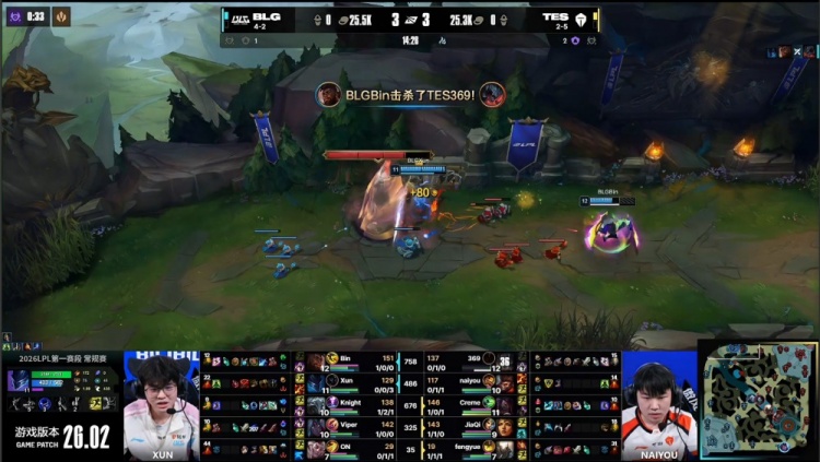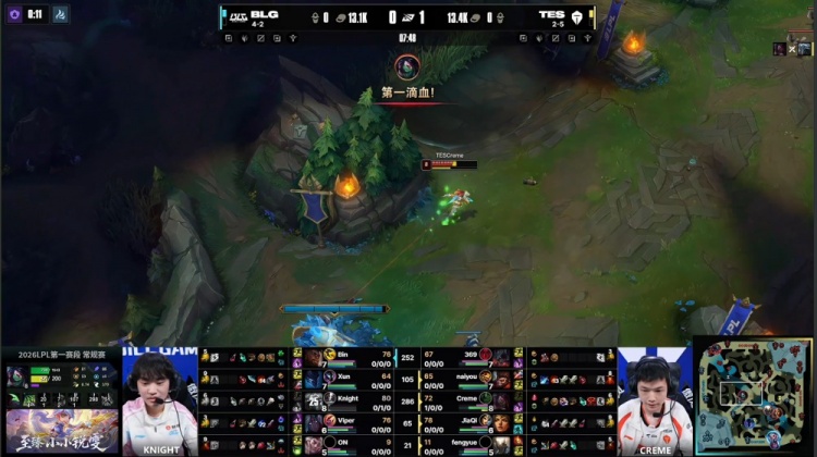 第一局:Wenbo都在督战!Bin哥兰博烧烤双奶油Viper3杀屠戮BLG赢首局