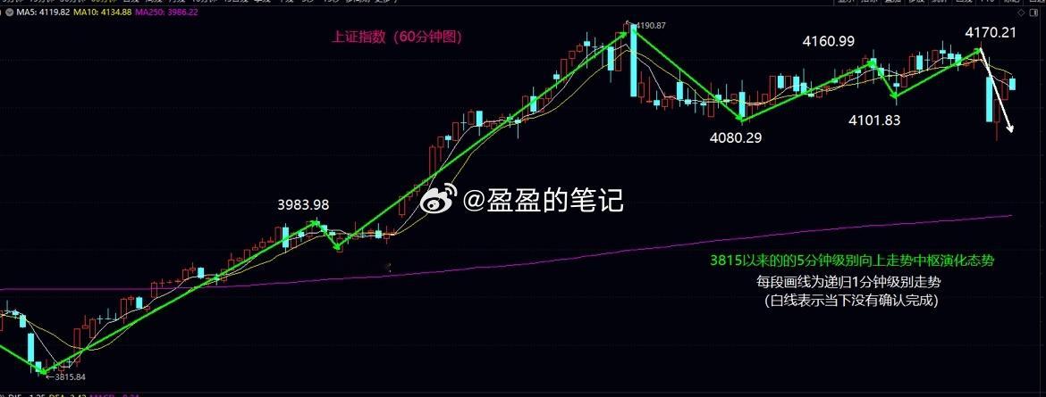 5分钟级别中枢继续震荡,4140仍然是下周初重点大盘今日低开后一路跌破4100关