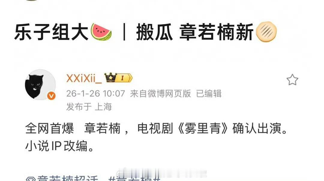 《雾里青》影视化,女主传瓜章若楠,男主瓜主说是90生,网友猜是李现,原著高干文,