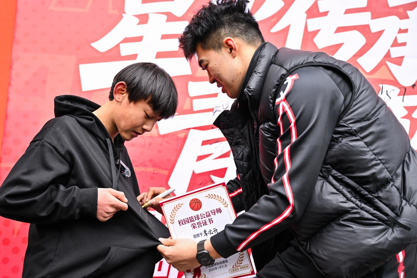 互动问答时,孩子们争相提问,球员们耐心解答,更分享了 “热爱与专注是追梦起点” 的成长感悟。活动尾声,四位球员获颁 “校园篮球公益导师” 证书,篮球成为梦想与热爱的传递纽带。
