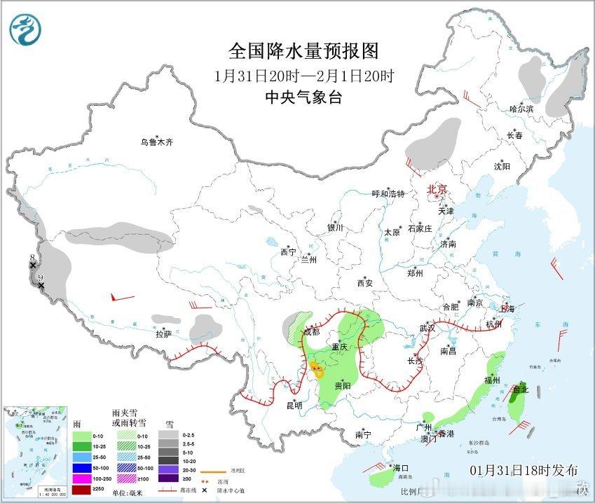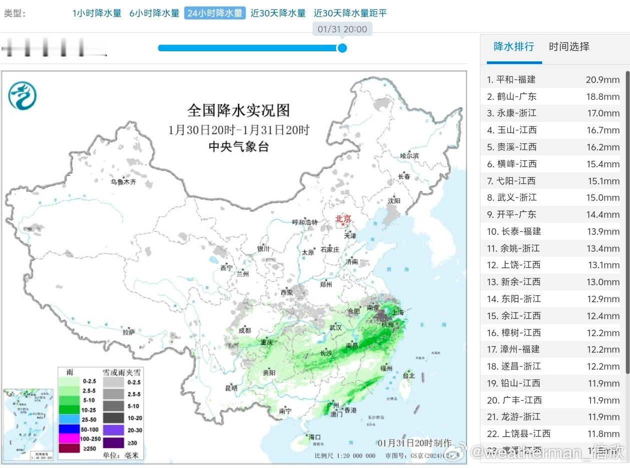 【降水】昨晚到今天,南方多地出现了降水。今晚到明天,南方降水明显缩减,北方多地空