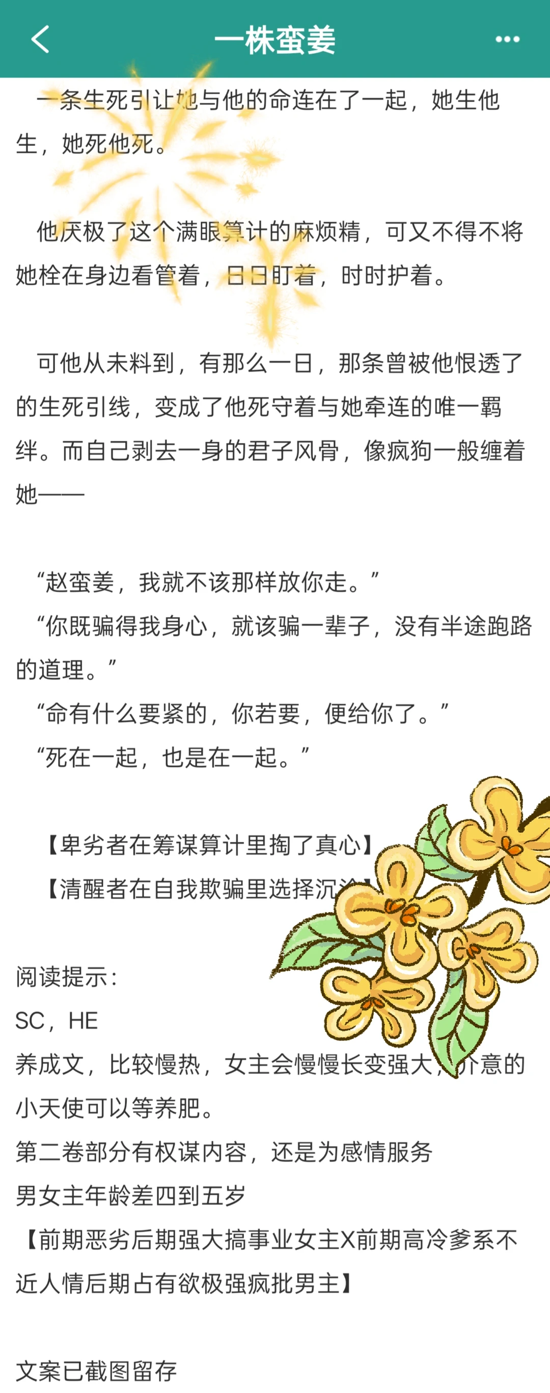 整个文都是跟着女主的成长线来的,里面的配角都很精彩,特别是女性角色非常出彩,我很喜欢里面几个女性配角,有的温柔强大,有的聪明又有野心,群像和宿命感写的很好~