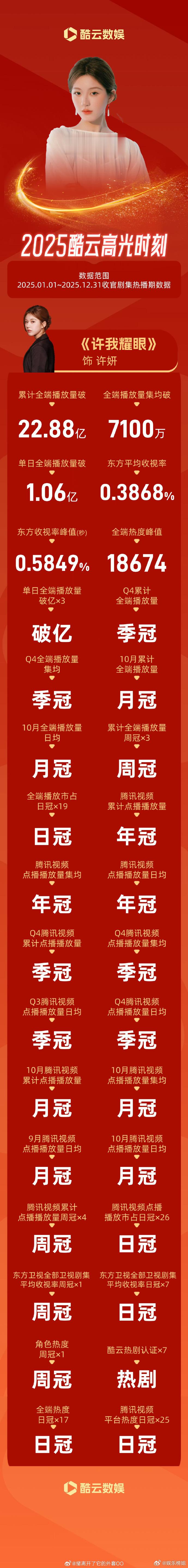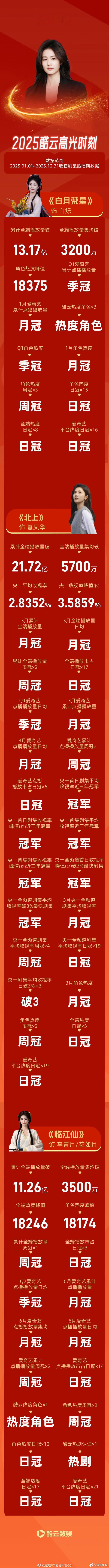 明星酷云战报酷云发的明星2025战报:肖战 杨幂 杨紫 迪丽热巴 赵露思 王鹤棣 白鹿 刘宇宁 檀健次 敖瑞鹏,2025好多品质好剧,期待2026有更多优秀的作品2025微博之夜爆款创作大赛
