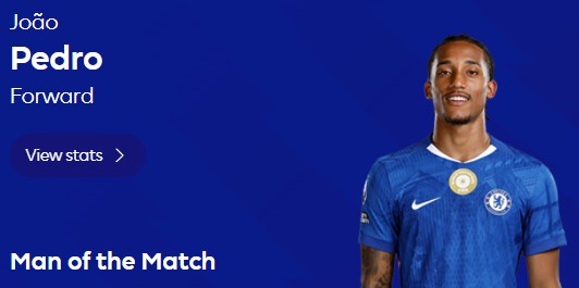 赛后本场替补传射建功的佩德罗当选本场球迷票选最佳球员。