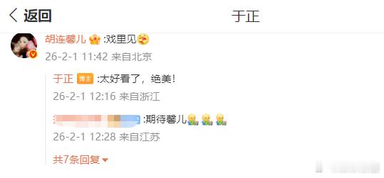 胡连馨回复于正于正发了《金吾不禁》杀青文,胡连馨回复于正一句:“戏里见”!回应其合作邀约,同时于正夸赞胡连馨“太好看了 绝美”,直接拉满期待,坐等美女的荧幕高光时刻!这波合作锁死,正片搞快点于老师!00后新生代热点捕捉计划
