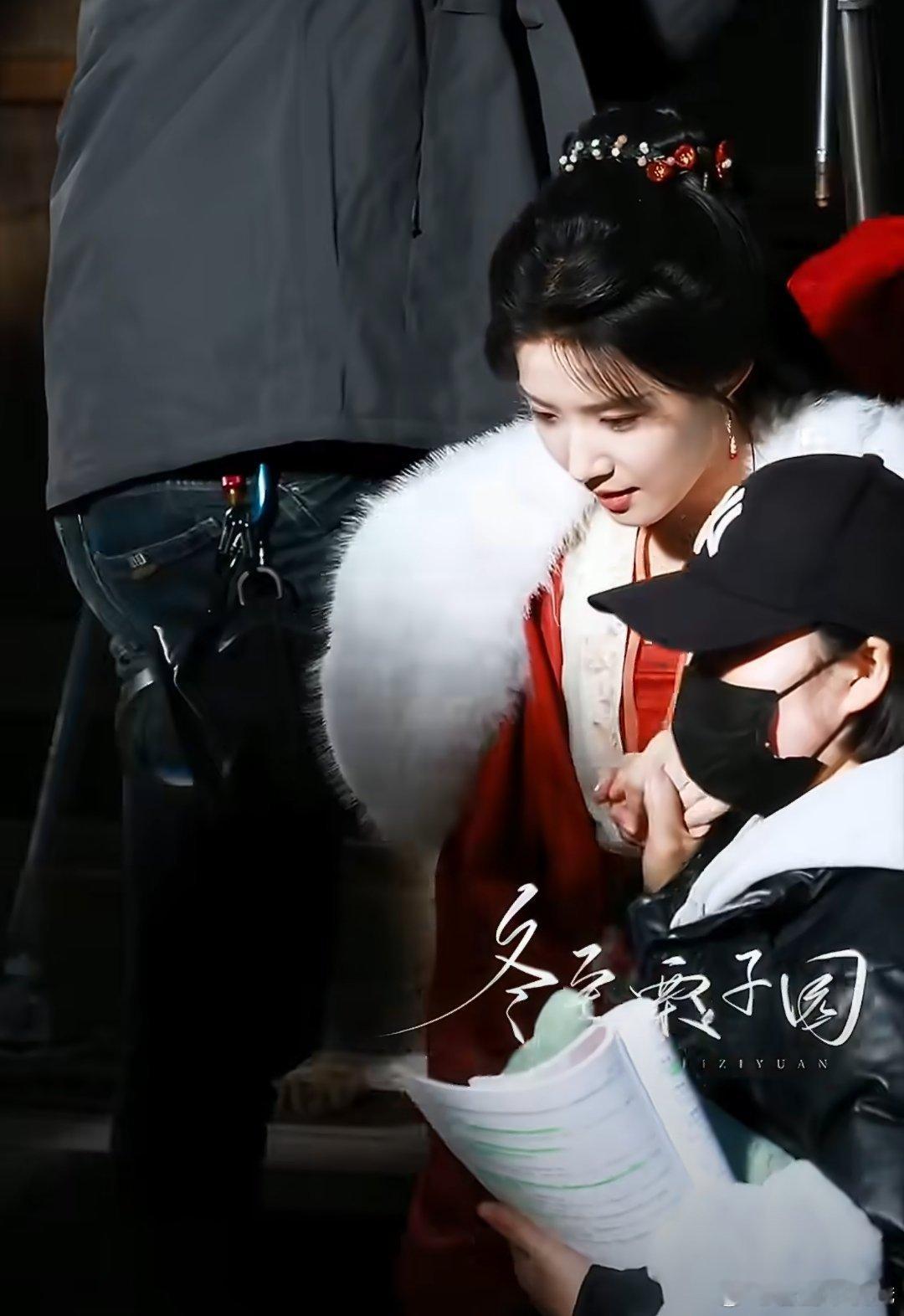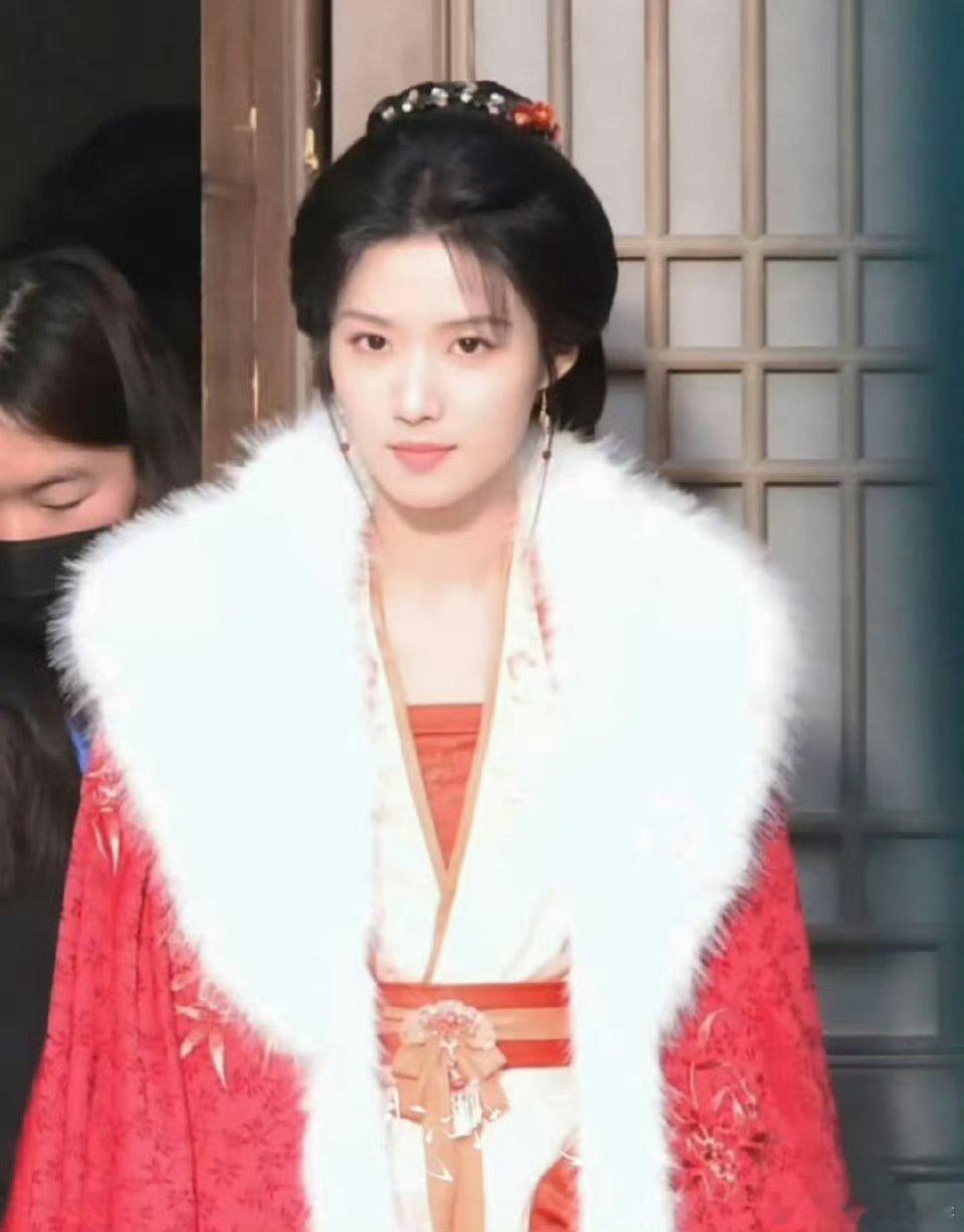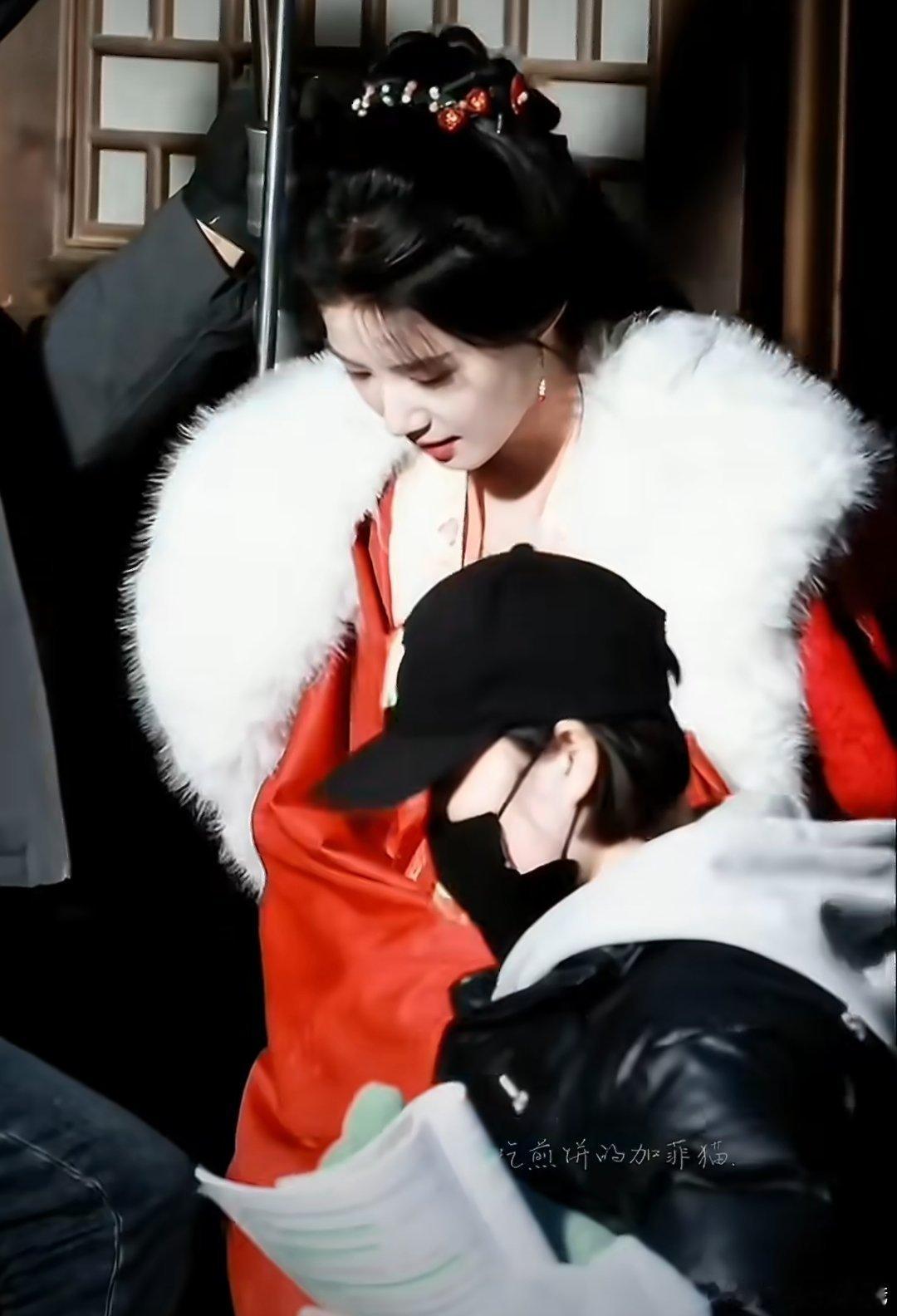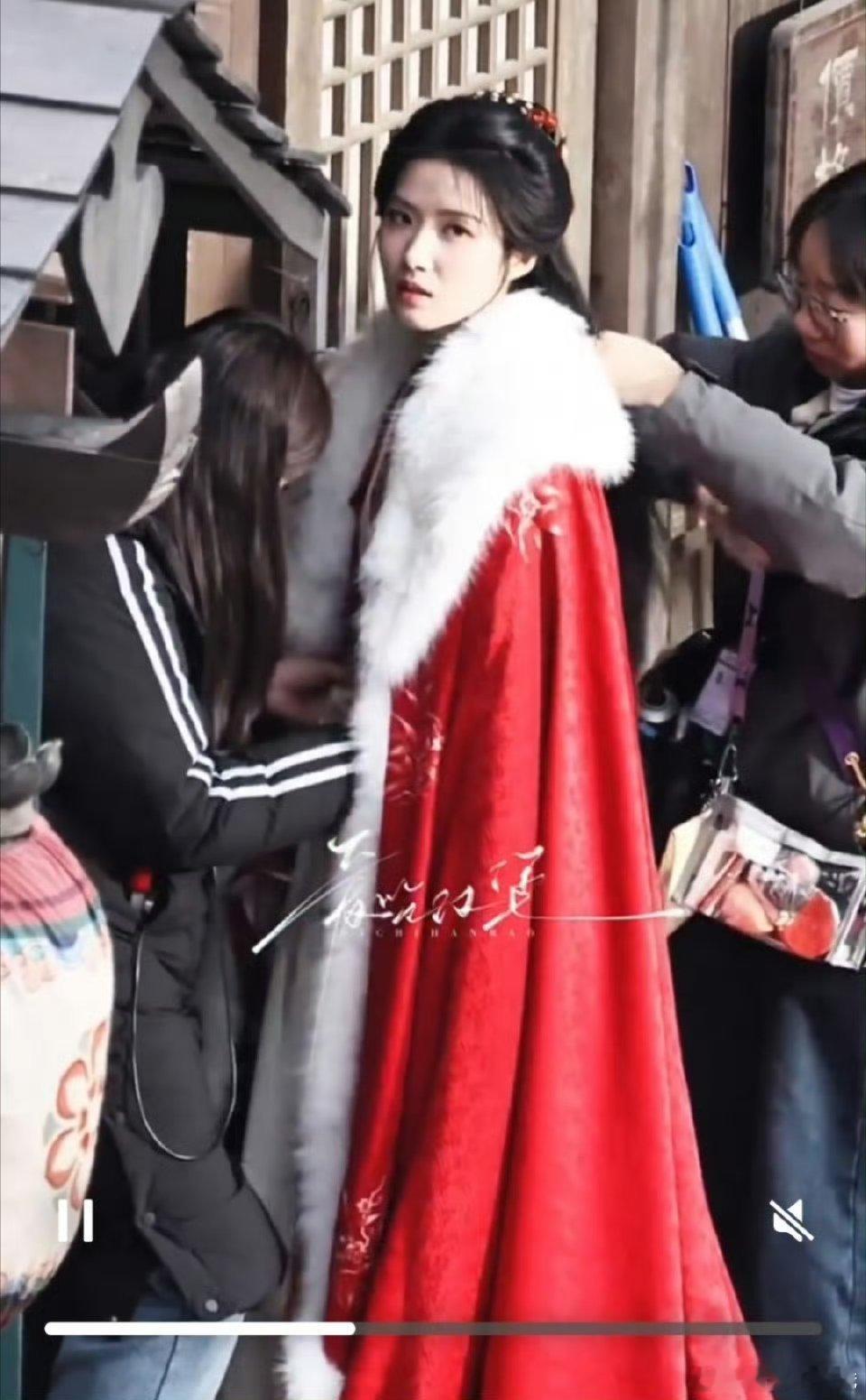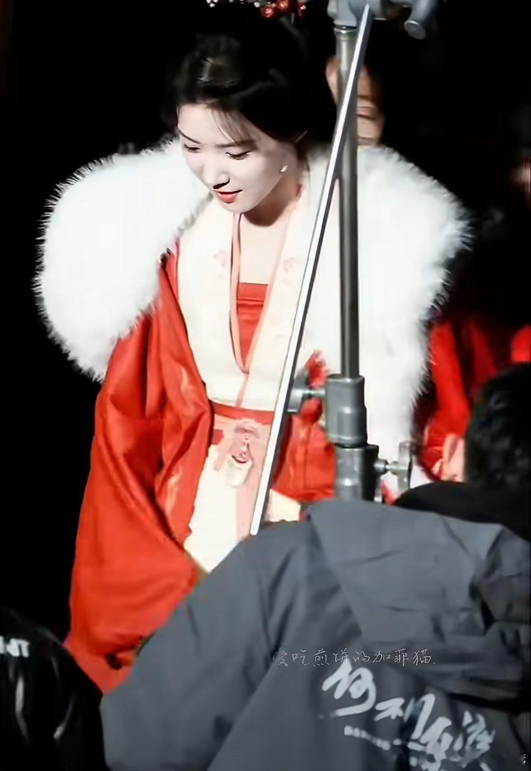 卢昱晓《何不同舟渡》红衣白裘路透,第一次看卢昱晓穿红色哇😯