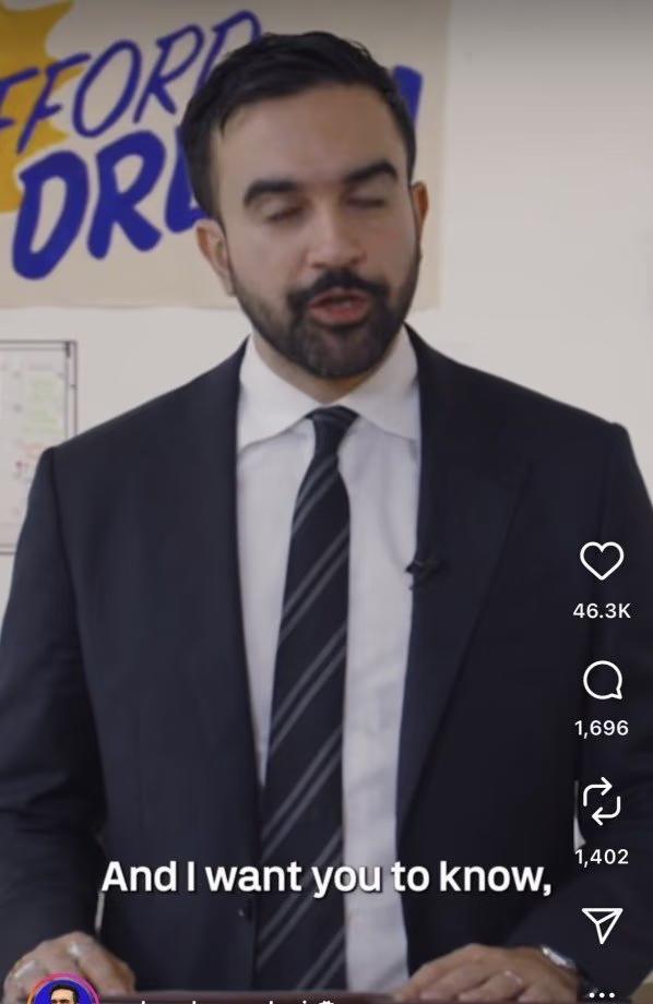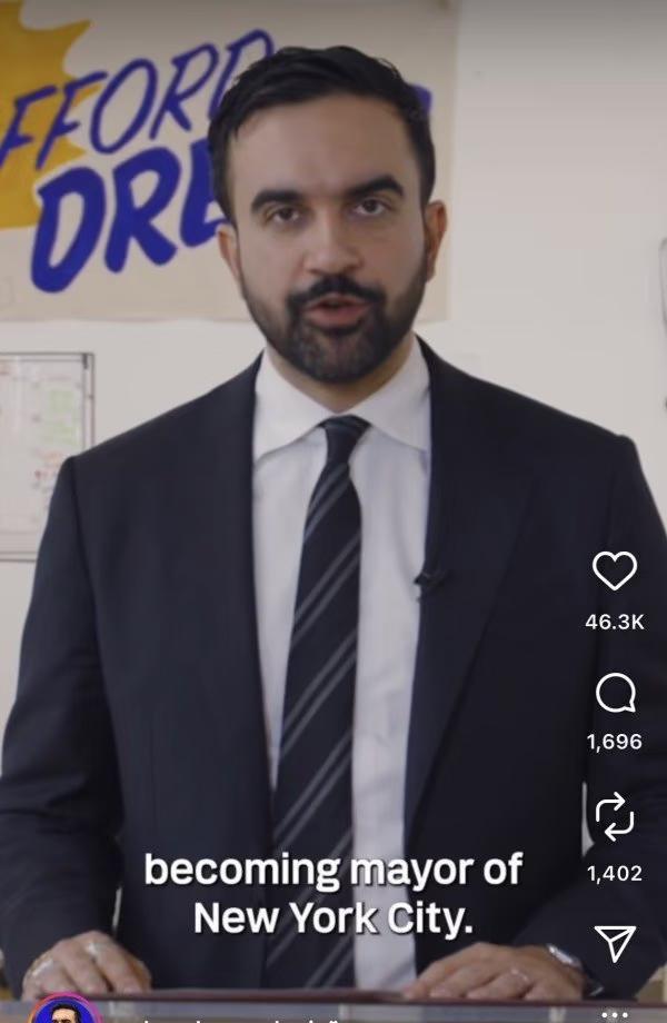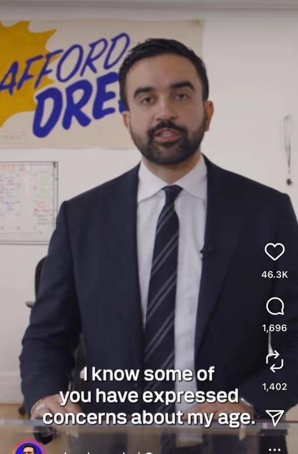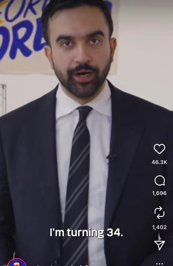 “各位市民 早上好 我知道不少人 “各位市民 早上好 我知道不少人 表达过对我年龄的担忧 你们担心 作为一个33岁的年轻人 我是否能胜任 纽约市市长这个职位 我想和你们说 我了解到了你们的担心 就在周末 我将为你们的担心做出改变 是的 我就要34岁了” —— 纽约市长祖赫兰·马姆达尼 source