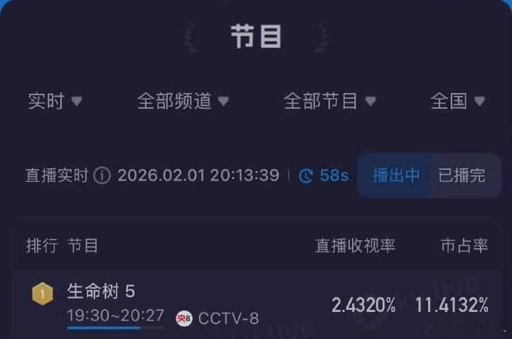 生命树收视率再创新高杨紫胡歌主演的新剧《生命树》开播后收视率持续攀升,第五集酷云