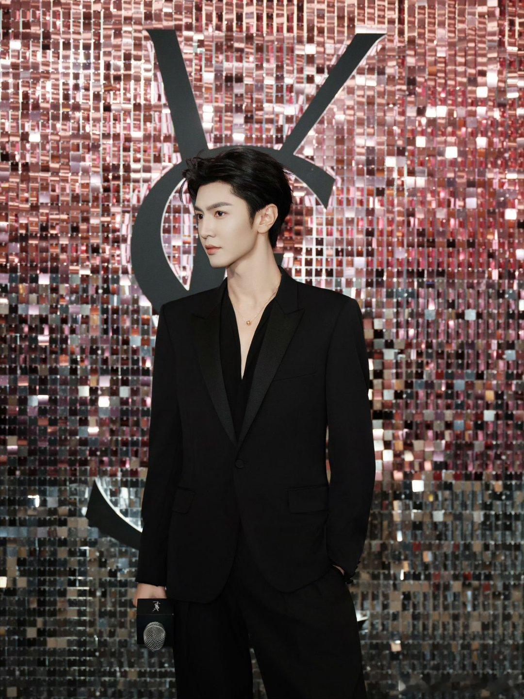 陈哲远今天品牌活动身穿Saint Laurent深V西服套装,佩戴伯爵高级珠宝,状态很不错!
