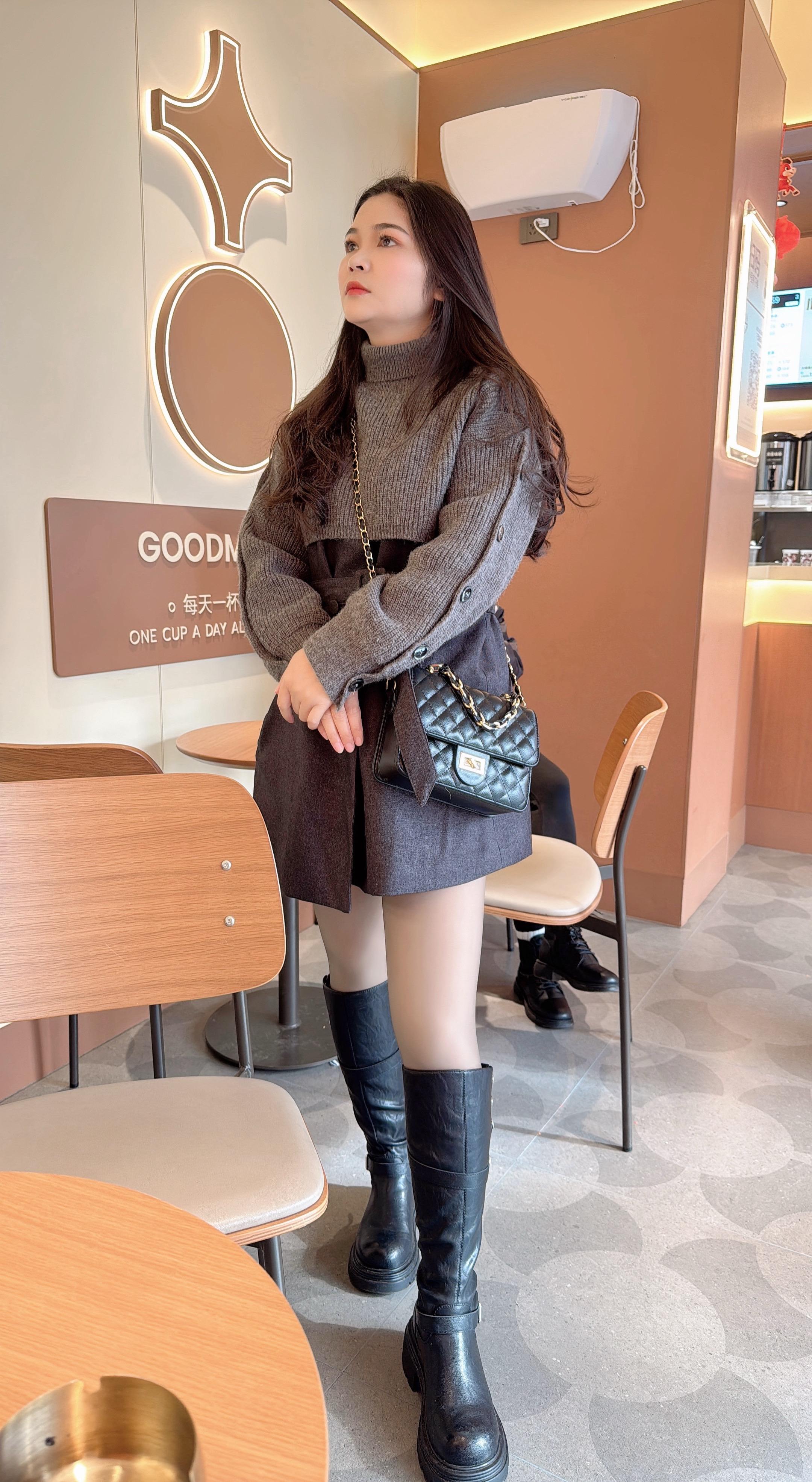 灰色针织衫搭配黑丝袜,元气感少女穿搭穿搭如何穿搭会具有少女软妹感纯真少女感穿