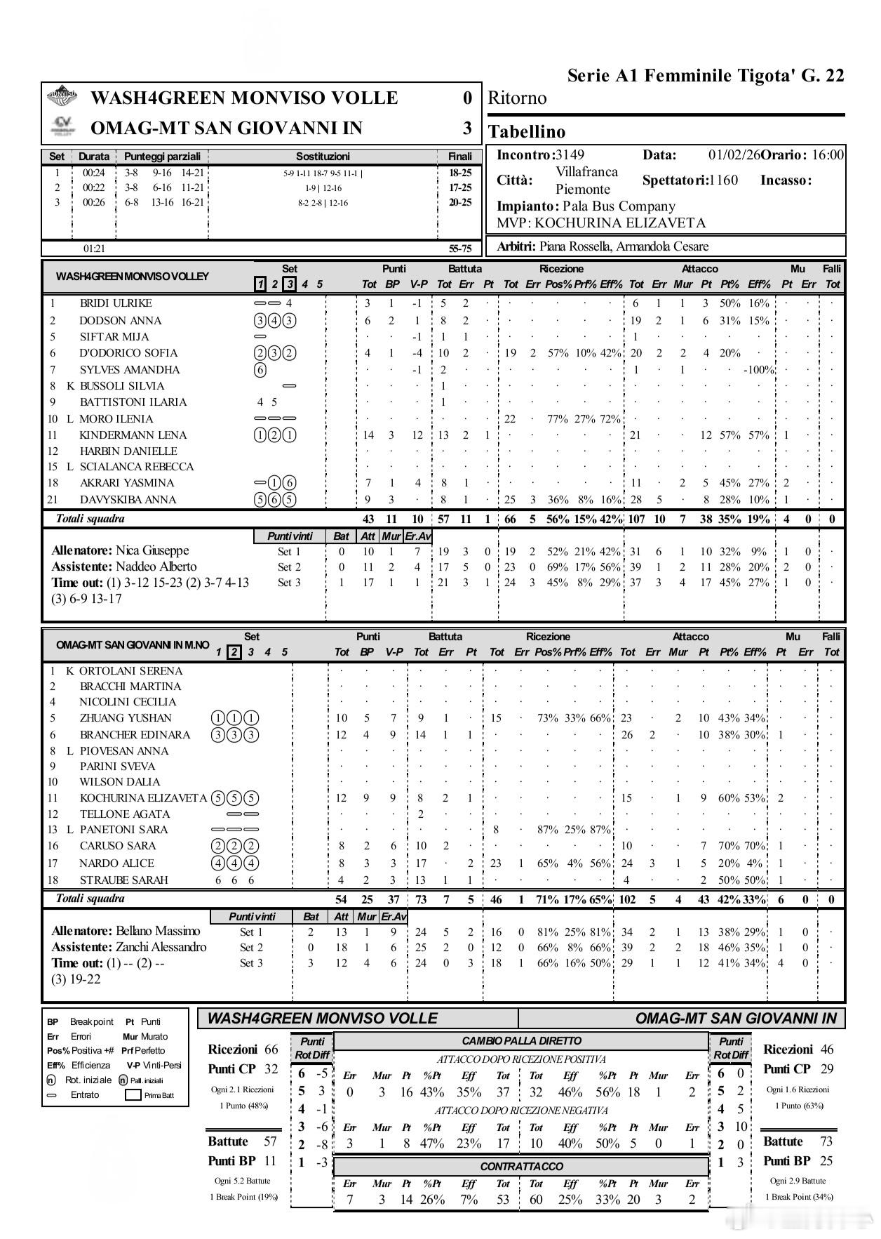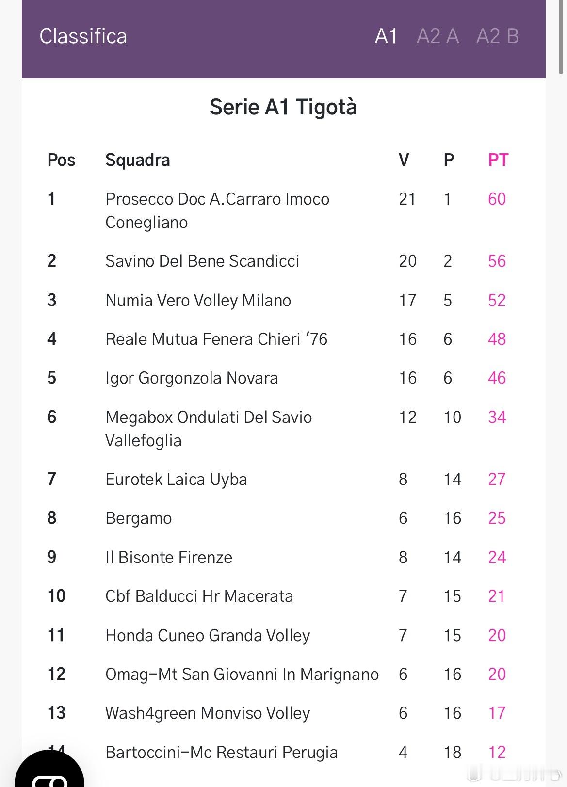 【保级关键战,圣乔瓦尼3-0蒙维索】意甲女排联赛第22轮,庄宇珊 加盟的圣乔瓦尼3-0横扫蒙维索,全取三分,比分25-18/25-17/25-20;即时排名来到第12位,暂时摆脱降级区;圣乔瓦尼6胜16负20分;庄宇珊本场10分(23扣10中2被拦,15个一传,到位73%,完美率33%)科楚丽娜MVP12分(15扣9中1被拦,2拦1发)布兰切尔12分,纳尔多8分,卡鲁索8分,斯塔比4分;蒙维索金德曼14分,达维斯基巴9分世界女排新闻庄宇珊留洋第一季庄宇珊