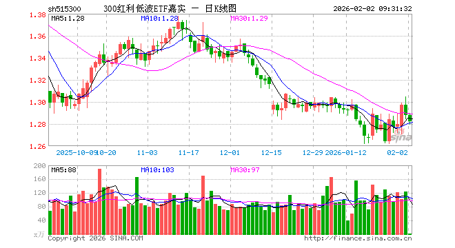 2月2日,300红利低波ETF嘉实(515300)开盘涨0.00%,报1.288元。300红利低波ETF嘉实(515300)重仓股方面,中国神华开盘跌0.67%,格力电器跌0.26%,中国石油跌2.90%,中国石化跌1.69%,双汇发展涨0.00%,中国海油跌4.70%,大秦铁路涨0.00%,中国建筑涨0.20%,招商公路涨1.17%,美的集团涨0.01%。