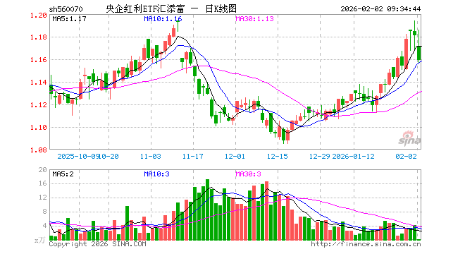 2月2日,央企红利ETF汇添富(560070)开盘跌0.85%,报1.171元。央企红利ETF汇添富(560070)重仓股方面,中远海控开盘涨0.00%,中国神华跌0.67%,中粮糖业跌2.20%,中国石油跌2.90%,中国石化跌1.69%,中国海油跌4.70%,中国外运跌0.84%,招商银行涨0.54%,宝钢股份跌0.55%,四川美丰跌3.10%。