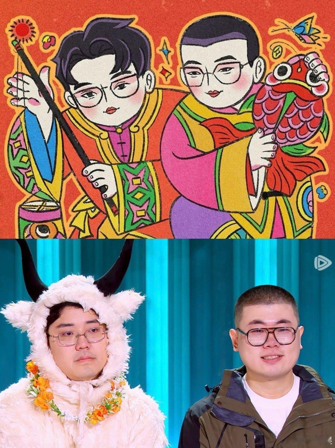 土豆吕严本人授权自己进年画了吗B站大年初一联欢会 这俩人的脸,是经过春节老祖宗开过光的吧?怎么就能这么浑然天成地融入年画氛围,毫无违和感!看他们笑,就莫名觉得明年肯定顺。这大概就是顶级喜剧演员的观众缘,看着就高兴。大年初一,就看他们怎么用喜剧“整活”传统,嗨翻全场。