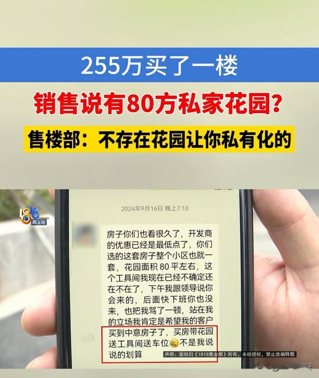 浙江杭州,边女士花了255万,在1楼买了一套带花园的房子。可交钱后,对方却告知,楼下的花园是公共地段,只允许她们摆一下凳子。边女士觉得自己多花了3万多,当初说好的是私有花园,怎么就只有这一点权限?而且楼上的业主也颇为不满,放话说如果她们敢在公共花园摆凳子、桌子,就会吐痰、扔垃圾。最后,边女士等人要求对方换房,可对方却称:“这又不是菜市场,合同都签了的。” 边女士最近本来特别高兴,终于买了一套心仪已久的带花园房子。虽说1楼潮湿、采光又不好,但她就是看中了这套房子的花园,这可是她梦寐以求的。 和边女士有同样遭遇的,还有另外六户业主,他们当初也是冲着这个花园才买的房,本来还想着以后在花园里栽栽花、养养宠物。 可等他们签完合同、交完钱后,却发现工作人员在群里发布通知,称1楼外面的花园属于公共设施。 这七户业主顿时就不干了:卖房的时候明明说是私人的,怎么交了钱就成公家的了? 当时销售明明承诺过:“你们这几户的花园都是给你们分割好的,以后任由你们自己规划。” 可现在的说法,却和当初完全不一样。 不过,开发商负责人表示,车位和工具间确实是私人所有,但这个花园本来就是公共地段,从来都不是私家专属的。 当大家质问对方为什么当初要那样推销,现在又反悔时,对方的解释却很牵强:“我们承诺的是你们可以在里面放个凳子,歇一歇、晒晒太阳、晒晒被子之类的。” 可私人专属和只能临时摆放物品,这两者之间的差别太大了! 即便如此,为了平息纠纷,七户业主还是退让了一步,愿意接受只能在花园临时摆放物品的方案。 但楼上的邻居却不答应,放话说:“你们胆敢在里面放凳子、放桌子、晾被子,我们就往花园里吐痰、扔垃圾!” 在楼上业主看来,这可是公共地段,不是属于哪一户人的专属空间,1楼业主没资格独占使用。 对此,边女士十分委屈:“同样的房屋面积,我买1楼要多花3万多,而且1楼还面临潮湿、采光差的问题,这多出来的3万多,难道不就是为了这个私有花园吗?” 可负责人却解释道:“你这3万多,可不是这么理解的。你家的层高要比其他楼层高一点,这3万多是层高溢价的钱,和花园没关系。” 但七户业主根本不认同这个说法:“你说什么就是什么吗?难道层高真的比其他楼层高?要不我们现在就去现场量一量!” 最后,负责人干脆表示:“我们的房子是一套一价,至于定价逻辑,是我们内部的事,反正你这套房子就是要多花3万多,但绝对不是因为带有私家花园,这个花园是公家的,我再次重申这一点。” 至此,七户业主彻底无法接受了,明确提出:“既然这样,我们也不要1楼了,也不要这个所谓的‘花园’了,你给我们换一套房吧。在同等价格、同等房源条件下,给我们换一套总可以了吧?” 可负责人却拒绝了这个要求,称:“这又不是菜市场,买了还能退、还能换?我们这是白纸黑字签了合同的,你买的是哪一套、多少钱,合同里都写得清清楚楚,不能随意更换。” 七户业主则认为:“这明明是你们的问题,不是我们的问题!是你们当初的推销宣传和房屋实际情况严重不符,才导致我们做出了错误的购房判断,这样的合同是可以撤销的!” 根据《民法典》的相关规定,第一百四十八条:一方以欺诈手段,使对方在违背真实意思的情况下实施的民事法律行为,受欺诈方有权请求人民法院或者仲裁机构予以撤销。 本事件中,开发商销售时故意虚假承诺1楼花园为业主私有、可自行规划,诱使边女士等七户业主忽视1楼潮湿、采光差的缺陷,多支付3万余元溢价购房,事后却称花园为公共区域,该行为符合欺诈“故意告知虚假情况、诱使对方违背真实意思实施民事行为”的核心要件。 七户业主的购房决策与开发商欺诈宣传存在直接因果关系,有权请求法院或仲裁机构撤销购房合同,并要求返还购房款、赔偿损失。 对于此事,大家如何看?素材来源于1818黄金眼