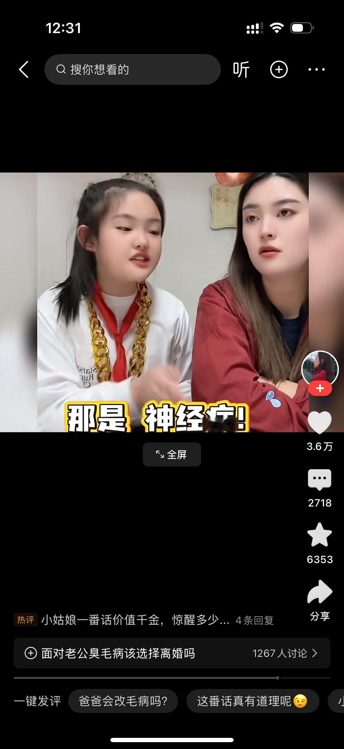 妈妈对女儿说,我要跟你爸离婚。女儿问,你发财呢?妈妈说没有啊。女儿说,那你就是发烧了,你咋想的?你孩子也生了,罪也受了,免费的保姆也当了。身材也变样了。好不容易熬到现在,你离婚给别人腾地方啊。妈妈说,我离了再找个好的。女儿说,那也就是送走我爸一个猪八戒,那再牵回来的,那也是头猪。到时候再找个带孩子的,这下好了,放着自己的孩子不养,去养别人的孩子。到时候等你老了,别人的孩子不会养你,自己的孩子也不认你。哪头轻哪头重?你自己掂量着办。妈妈说,可是你爸他天天都气我,臭毛病一点都不改。女儿说,只要他还能挣钱能养家,你就当个睁眼瞎。能改变自己的那是神,想改变别人的是神经病。这么大年纪了,这点事都不懂。我是你亲生的,还能害你啊,啥也不是。妈妈被女儿说的一愣一愣的。