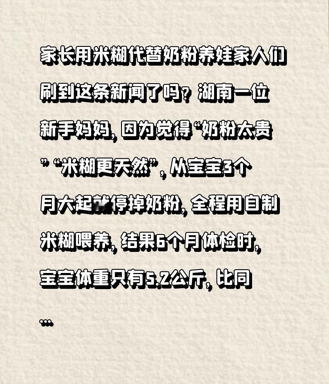家长用米糊代替奶粉养娃 家人们刷到这条新闻了吗?湖南一位新手妈妈,因为觉得“奶粉