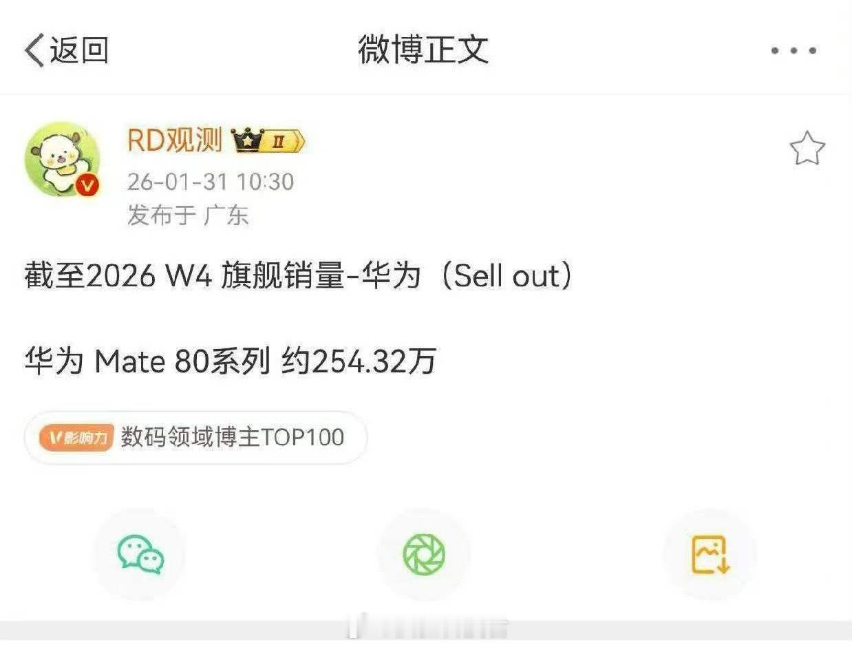 华为再夺1月中国手机市场份额第一 2026年1月的国内手机市场份额数据出炉,华为以18.6%的份额再度登顶,用开门红的成绩印证了其强大的品牌号召力和产品竞争力。从数据上看,华为的领先,背后是其在高端市场的持续领跑,以及全产品线的稳健表现。这一成绩不仅是新年的好兆头,更预示着2026年的国内手机市场,大概率会延续“强者恒强”的格局。而华为能否继续扩大优势,也将成为接下来行业最值得关注的看点之一。华为领跑新年手机市场