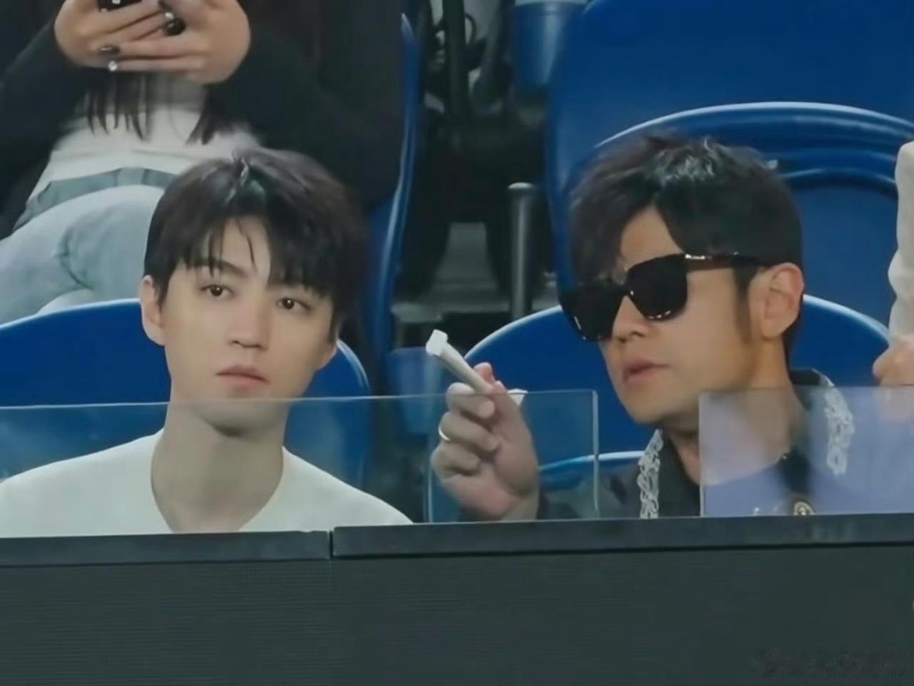 周杰伦拿着奶茶吸管给王俊凯指点江山! 周杰伦: 看见了吗,哥就是在那个地方,比赛