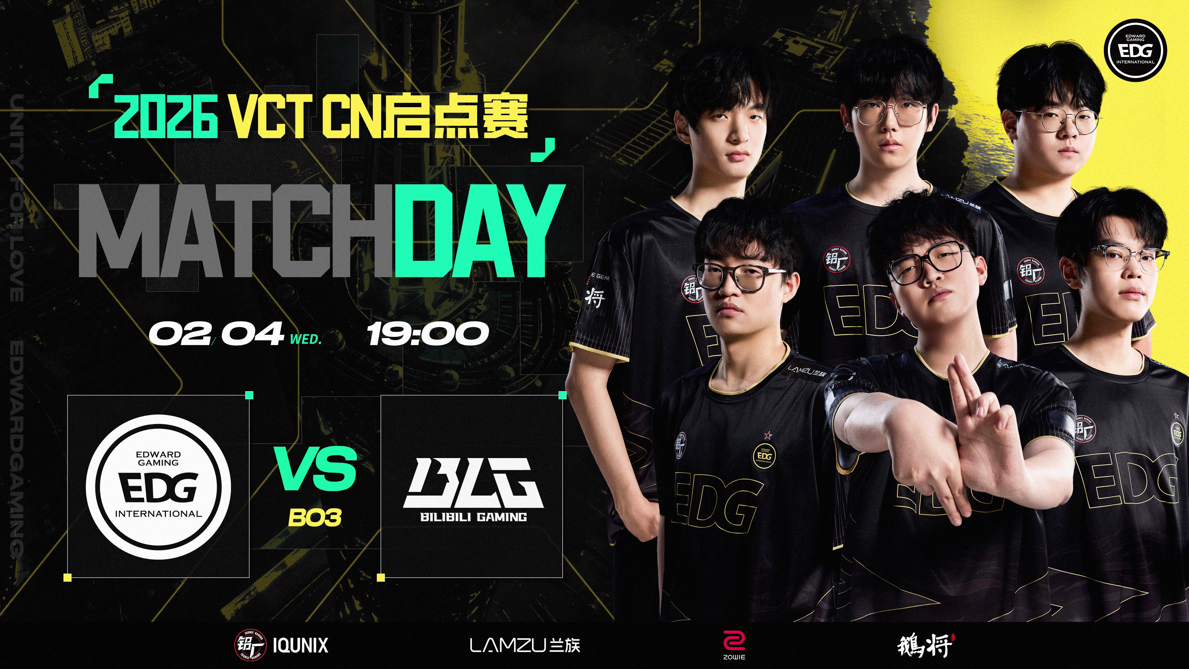 虎扑02月03日讯EDG发布2026VCTCN突围组第三轮对阵BLG赛事预告: