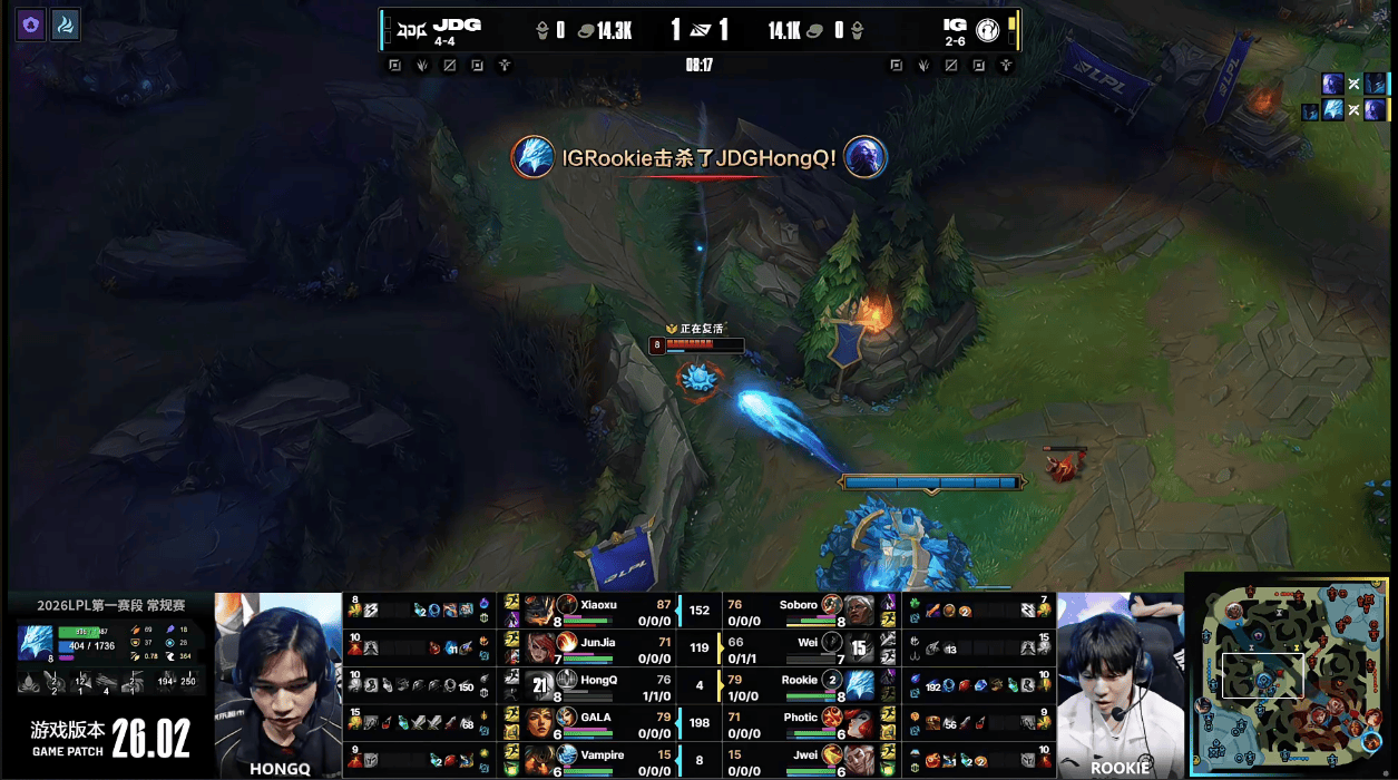 虎扑02月03日讯GAME2:JDG蓝色方;IG红色方