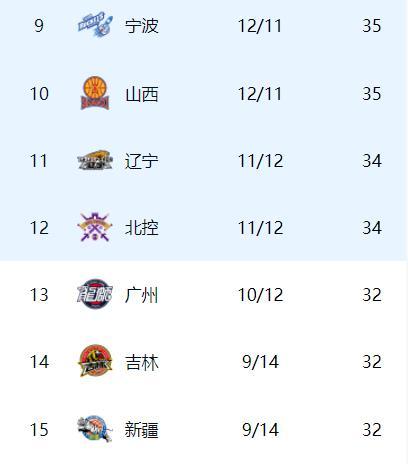 CBA第一阶段23轮比赛全部结束,积分榜榜首易位,上海队19胜4负最后反超广厦队排名第一,广厦队也是19胜4负,虽然战绩与上海队相同,但因为他们与上海队比赛输了,因为胜负关系排名第二。 广东队再次输给上海队后17胜6负排名第三,青岛队14胜9负排名第四,深圳队同样14胜9负排名第五,山东队15胜7负排名第六(山东少赛一场,按胜率算山东队应该排名第四),北京北汽14胜9负排名第七,浙江稠州13胜10负排名第八(丁团长下课后浙江队战绩大幅提升)。 宁波队和山西队都是12胜11负,分别排名第九和第十,辽宁队和北控队同样是11胜12负,分别排在第十一和第十二。 后面广州队、吉林队、新疆队、天津队、福建队还有同曦队与前面球队差距不大,还都有进入季后赛希望。 辽宁队胜率不足50%,这是近十年来辽宁队成绩最差的一个阶段,希望春节过后外援哈维的到来能给辽宁队带来一些起色。