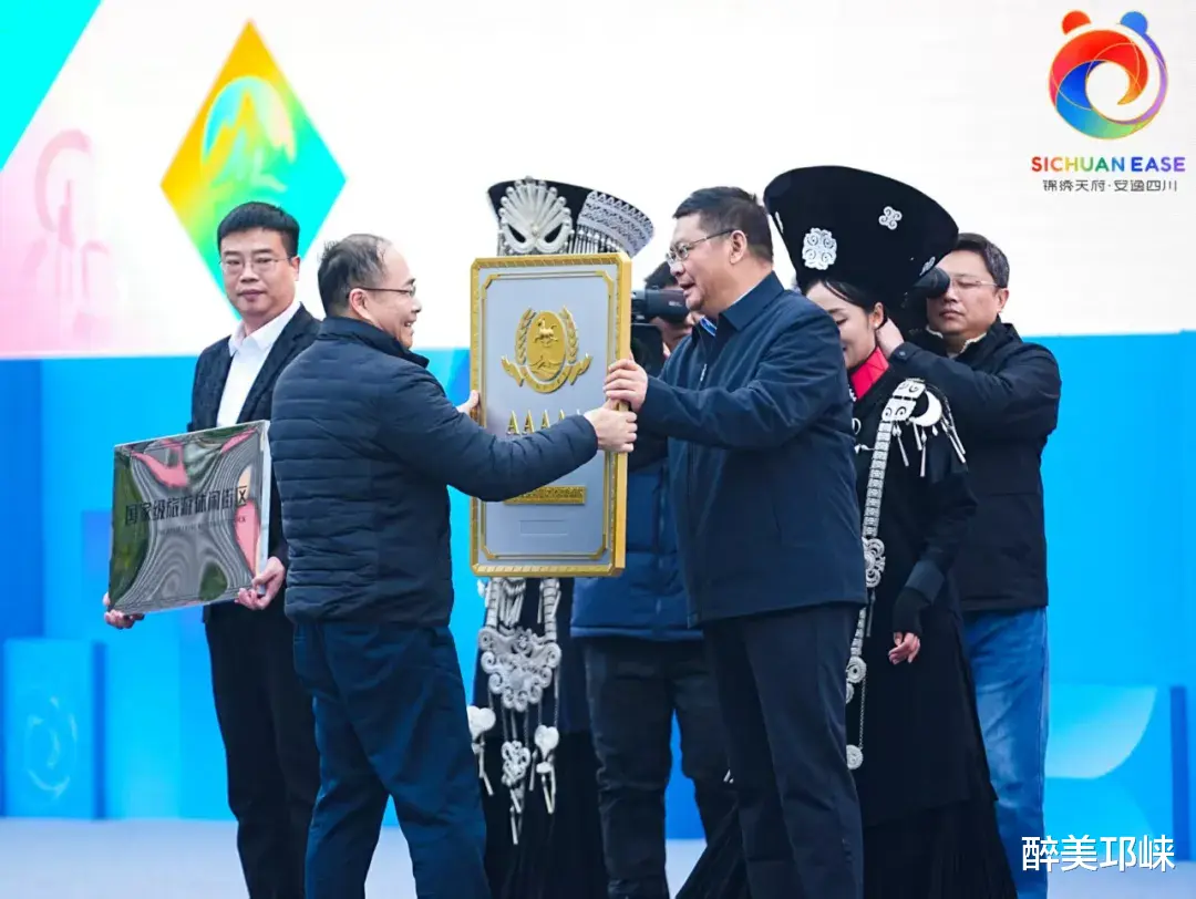 2025年四川省旅游景区发展大会,天台山5A景区作为全场最高级别的荣誉,在成果展首位展出。胡云省长为邛崃市颁奖。