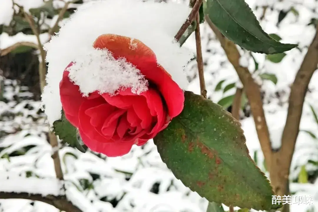 在冰天雪地的世界里,山茶花无畏严寒,傲然绽放,于寂静山林中,独自散发着馥郁芬芳,香气淡雅幽远,丝丝缕缕飘散在空气中,沁人心脾。