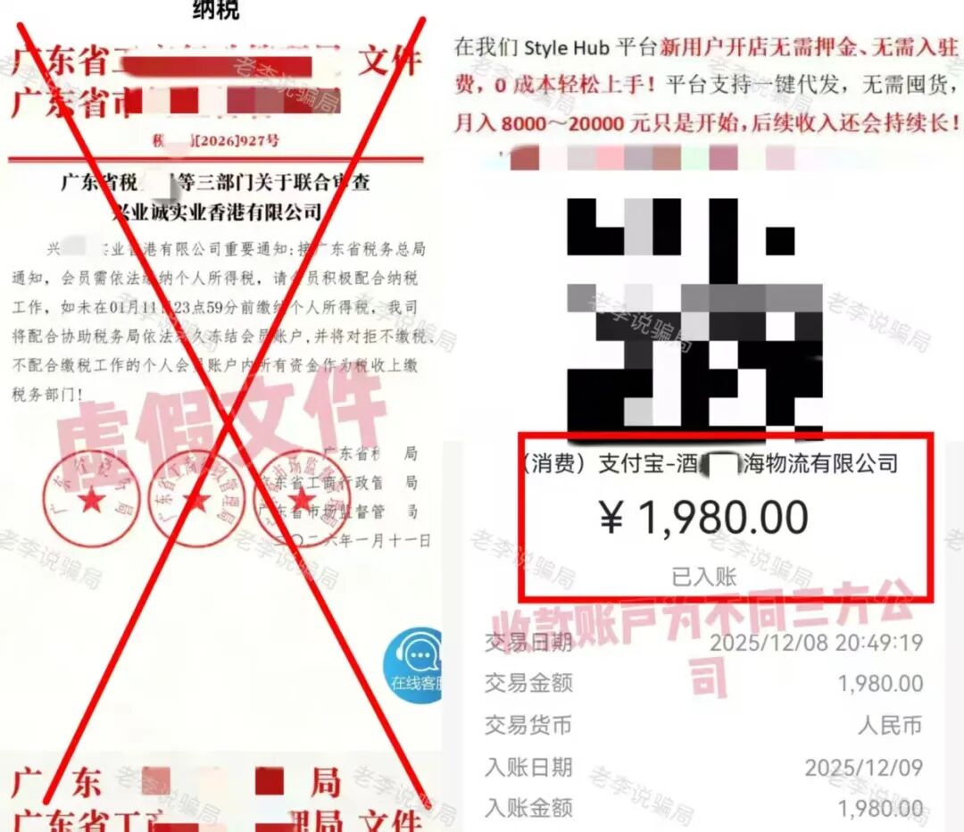 冒充香港某电商旗号,以“一件代发、零元开店”为诱饵,吸引用户开设跨境电商网店。