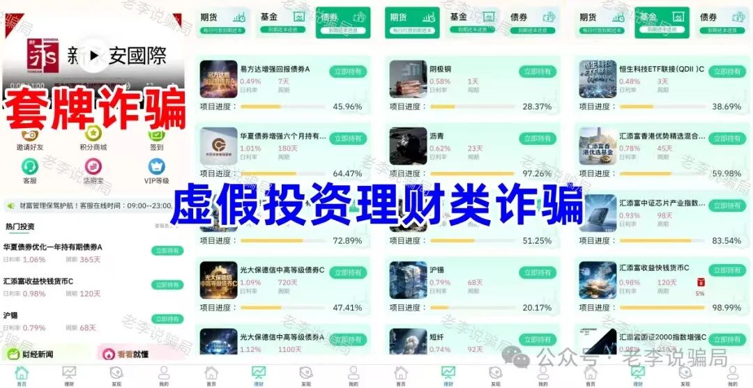 冒充香港“永安国际”公司的名义,制作假的APP,想参与者推广“期货”“基金”“债券”等日利率0.49%以上高额返利项目。