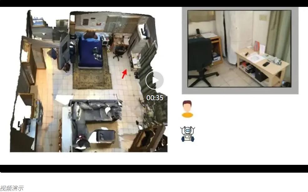 在现实世界中,我们的视野范围是有限的,我们的眼睛在某一时刻只能聚焦于一个局部的场景。随着不断的探索,移步换景,我们对于全局场景逐步地形成一个更为清晰的认识;与此同时,基于当前以及历史的观测,我们也能感知自身的位置变化以及与之前见过的物体的位置关系 (「我离那把椅子越来越远」「棕色的枕头现在在我的右后方」)。
