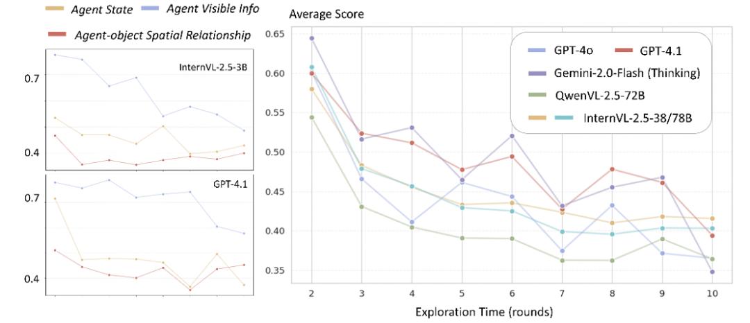 (2) 补考的结果表明:复杂线索条件下的空间推理能力不足与长期记忆检索机制薄弱是当前模型在在线时空理解任务中准确率受限的两大关键因素。