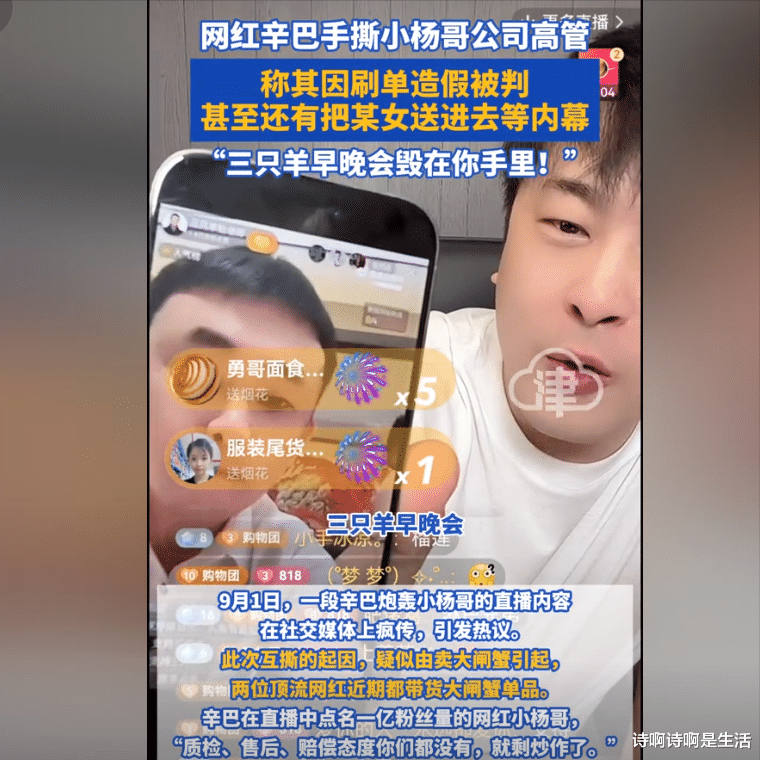 直播两大巨头矛盾爆发,为了利益互撕距离辛巴上一次登上热搜,其实还不到一个月的时间,那时候是和女明星杨颖有关。